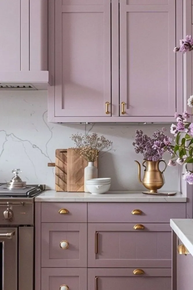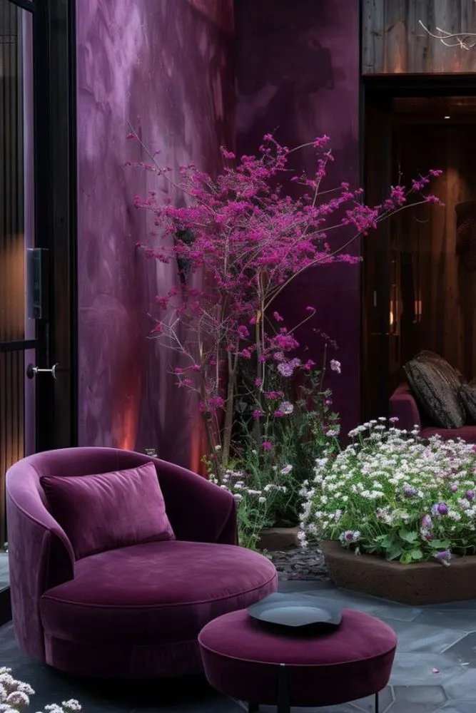 ▫️ Tonal Choreography Pair lavender walls with plum velvet accents for depth. Add metallic finishes (gold handles/mirrors) to elevate warmth, as seen in the 60-30-10 color formula . ▫️ Material Poetry Balance regal velvet drapes with raw textures like concrete floors or woven pendants—a clash of elegance and edge . ▫️ Artful Disruption Anchor spaces with abstract purple art or amethyst geodes. Pro tip: Use soft blush tones to neutralize intensity, inspired by millennial pink trends . ▫️ Light Alchemy 2700K warm bulbs transform eggplant cabinets into cozy vignettes. For drama, try LED strip lighting under floating shelves . ▫️ Rule-Breaking Accents Ditch neutrals—emerald greens or citrine yellows create bold contrasts. Warning: Keep accent ratios below 20% to avoid chaos .