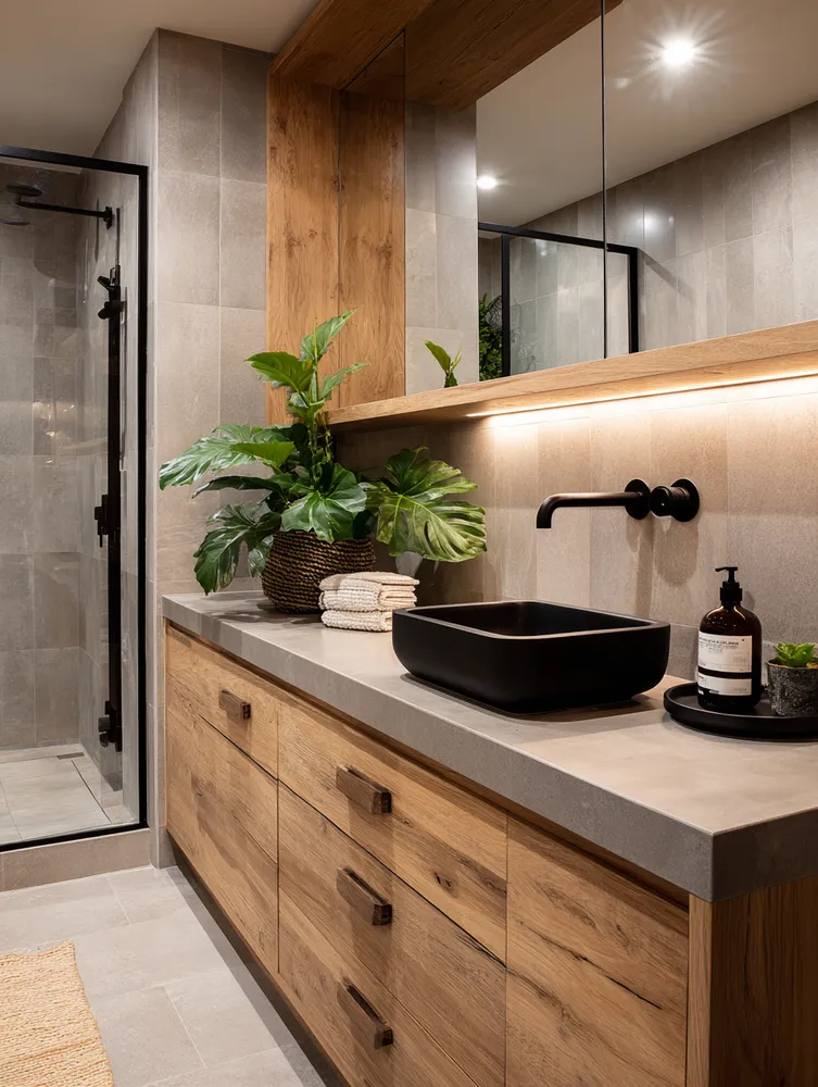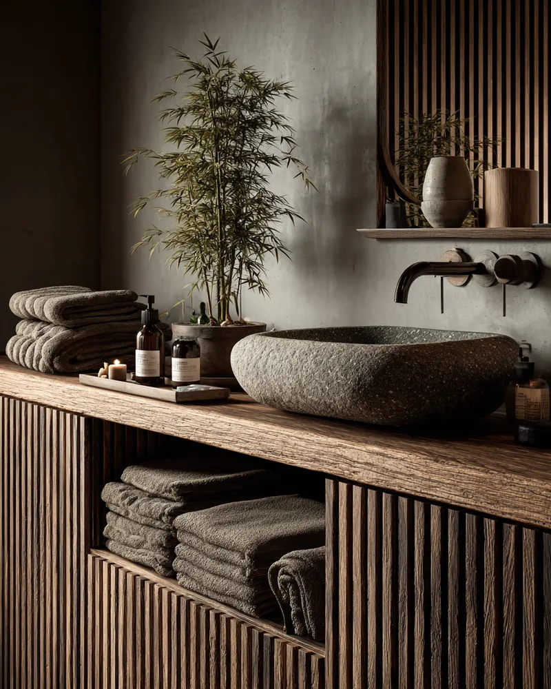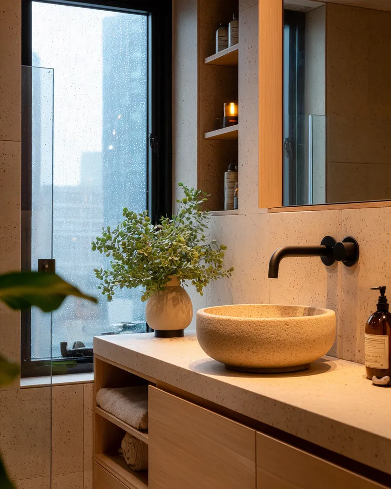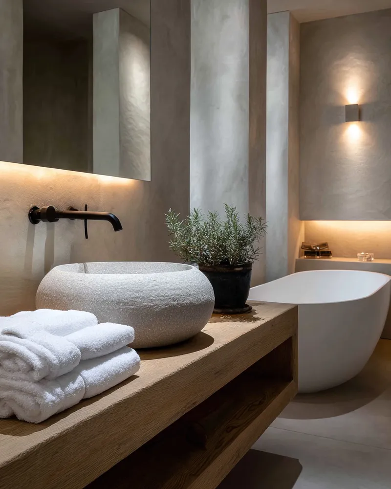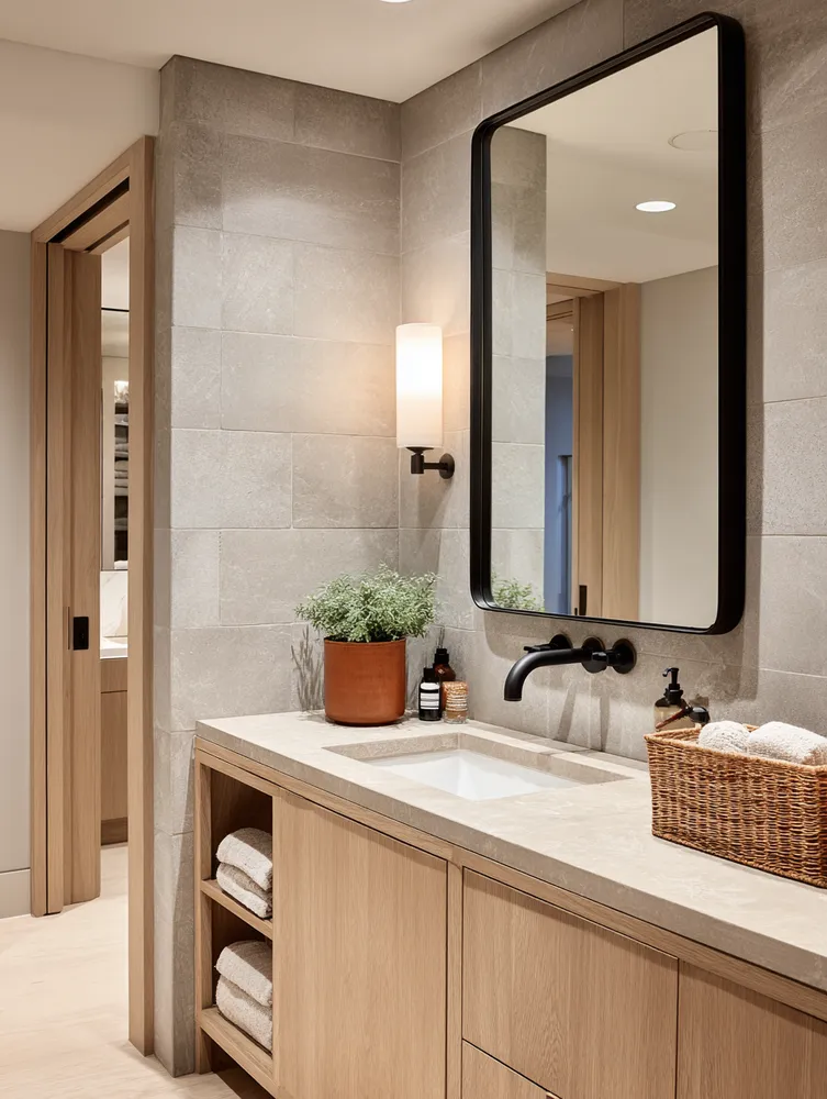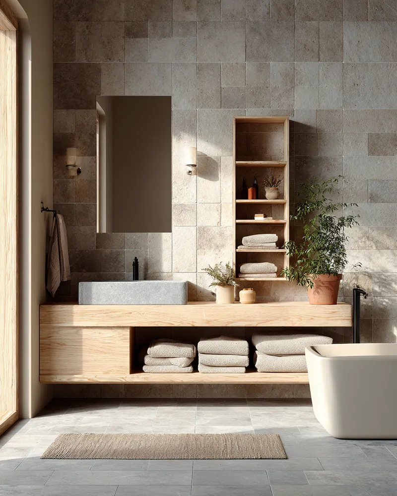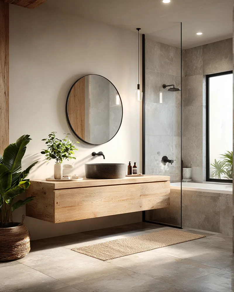 Create a spa-like sanctuary with Japandi bathroom design! ๐ค This style merges Japanese minimalism with Scandinavian functionality for ultimate tranquility. Think natural wood vanities, stone or concrete textures, and a neutral color scheme. Embrace clean lines and clutter-free surfaces. Add soft, diffused lighting and a few well-chosen plants. This creates an oasis of calm in your urban home, making your daily routine a peaceful ritual. Perfect for a refreshing escape!