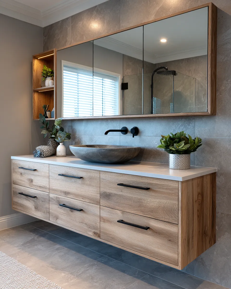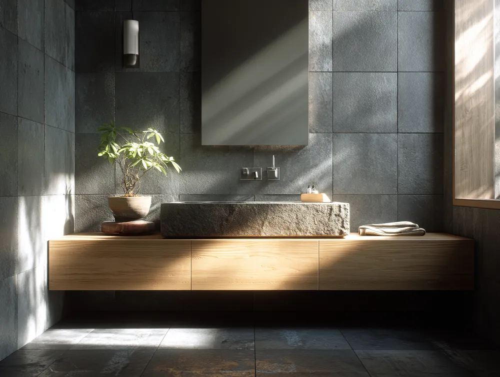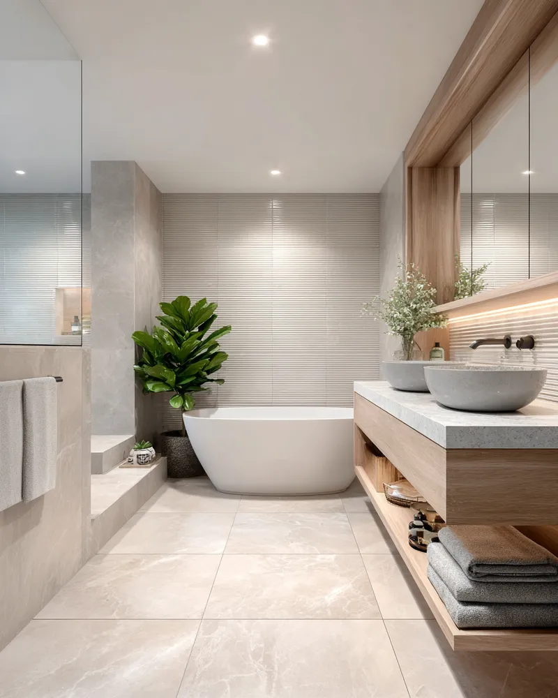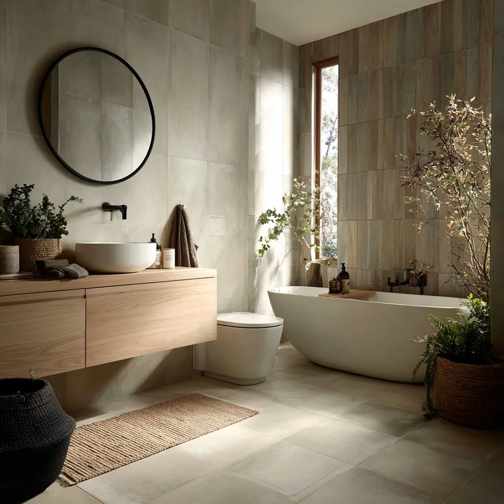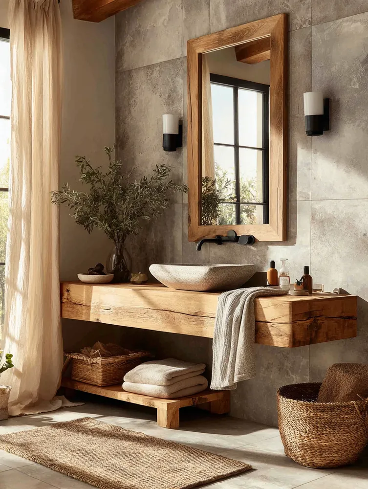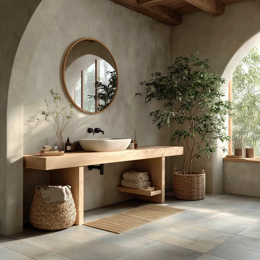 Create a spa-like sanctuary with Japandi bathroom design! ๐ค This style merges Japanese minimalism with Scandinavian functionality for ultimate tranquility. Think natural wood vanities, stone or concrete textures, and a neutral color scheme. Embrace clean lines and clutter-free surfaces. Add soft, diffused lighting and a few well-chosen plants. This creates an oasis of calm in your urban home, making your daily routine a peaceful ritual. Perfect for a refreshing escape!