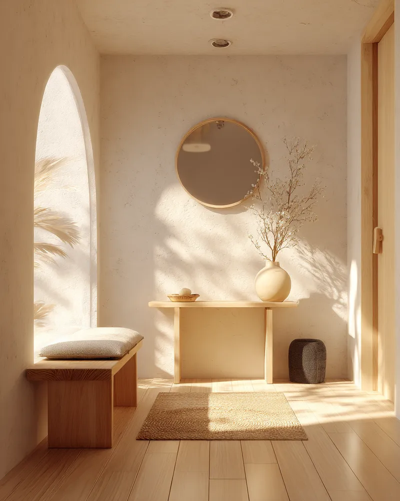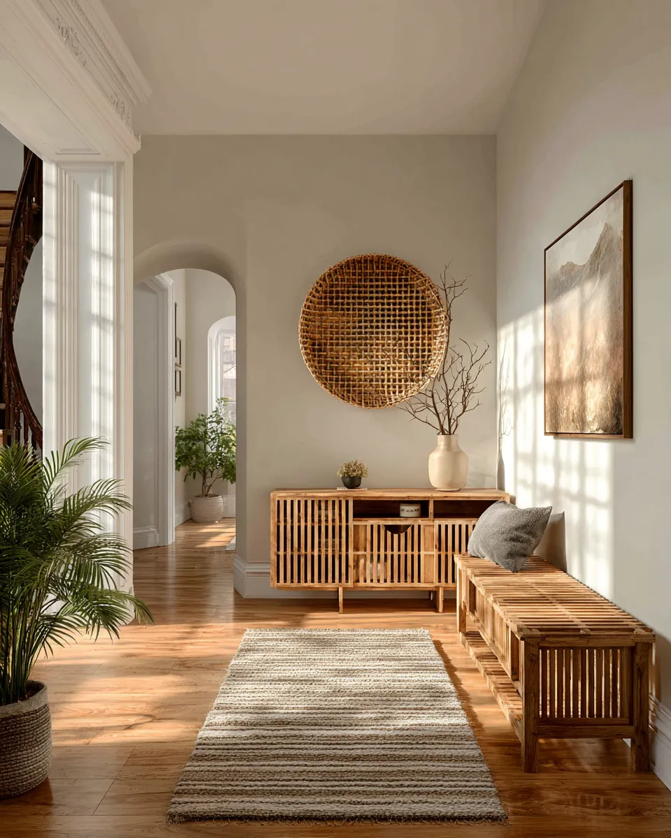 The entryway sets the tone for your entire home. For that signature Japandi vibe – a blend of Japanese minimalism and Scandinavian comfort – we want serenity and functionality. My secret is thoughtful simplicity!