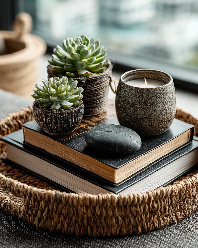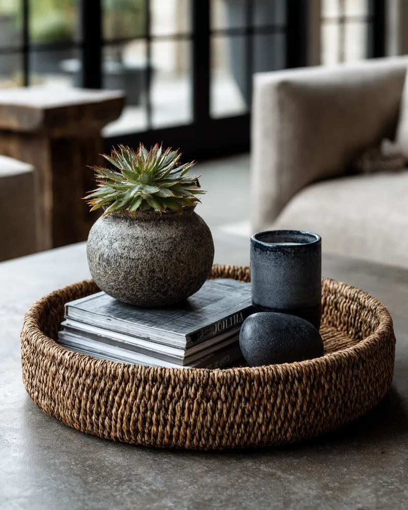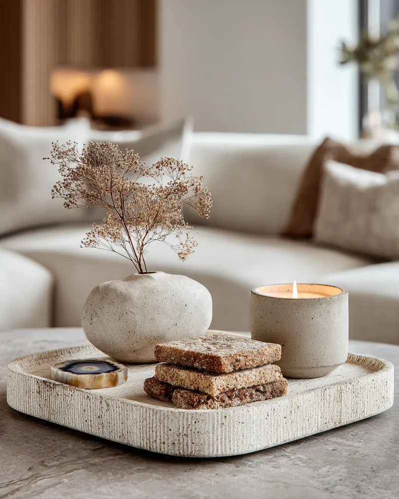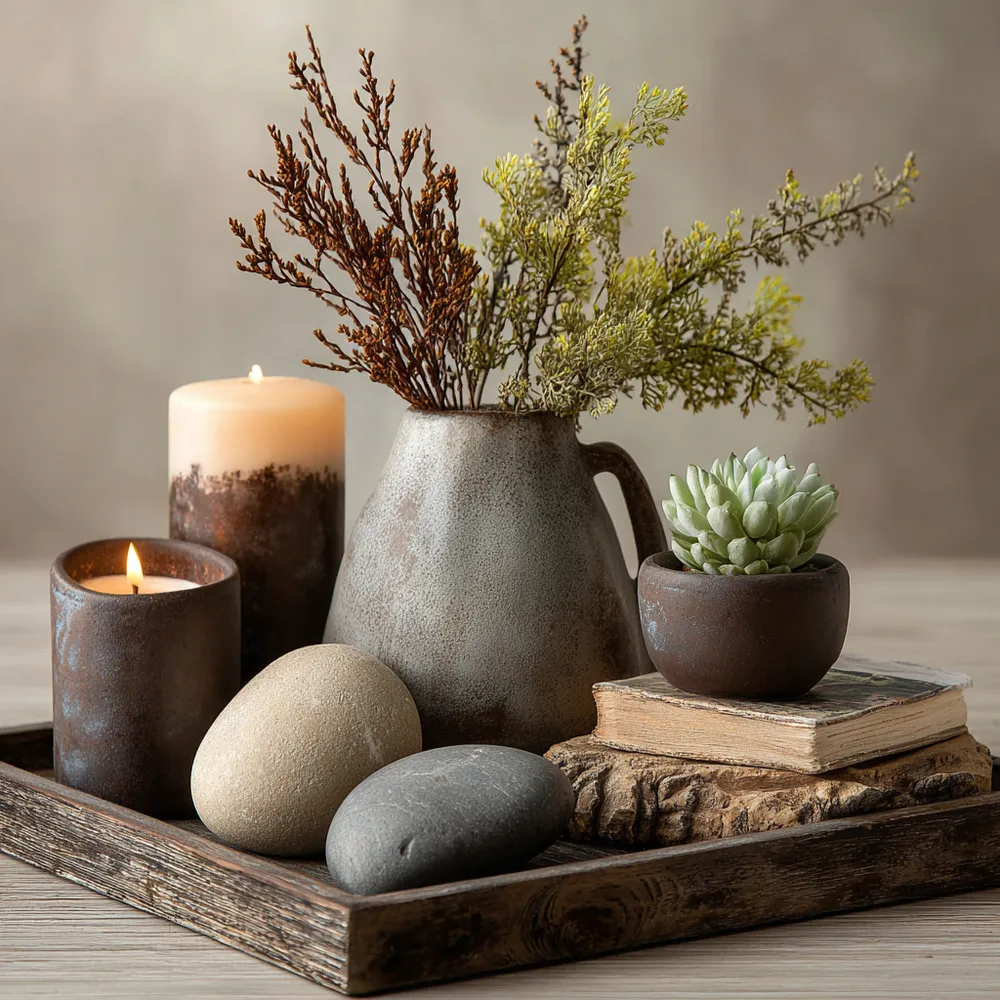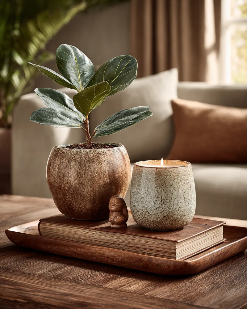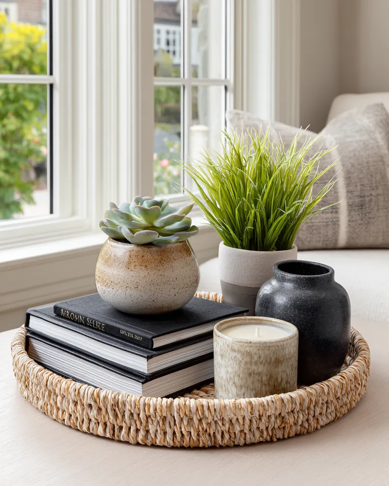 * **The Anchor:** Start with a beautiful tray. Wood, marble, or woven – it defines your arrangement. 💫