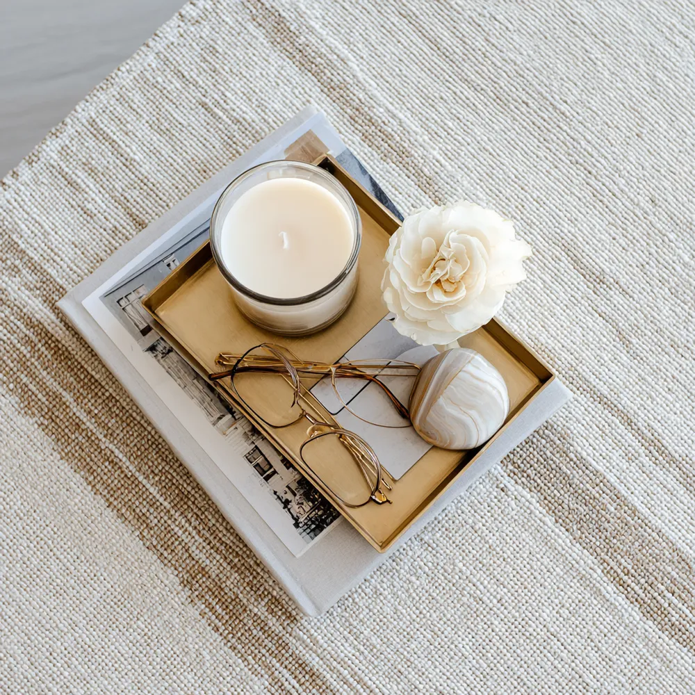 * **Sensory Details:** A stylish candle adds a warm glow and subtle fragrance.