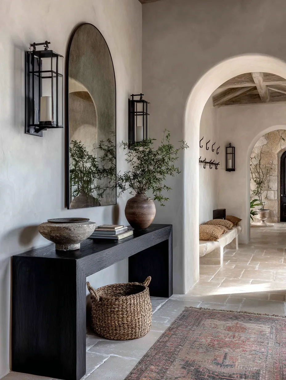 * **Functional Storage:** A stylish bench with hidden storage or a chic coat rack keeps clutter at bay.