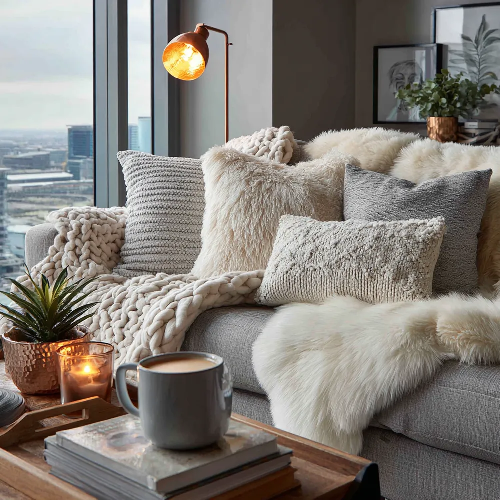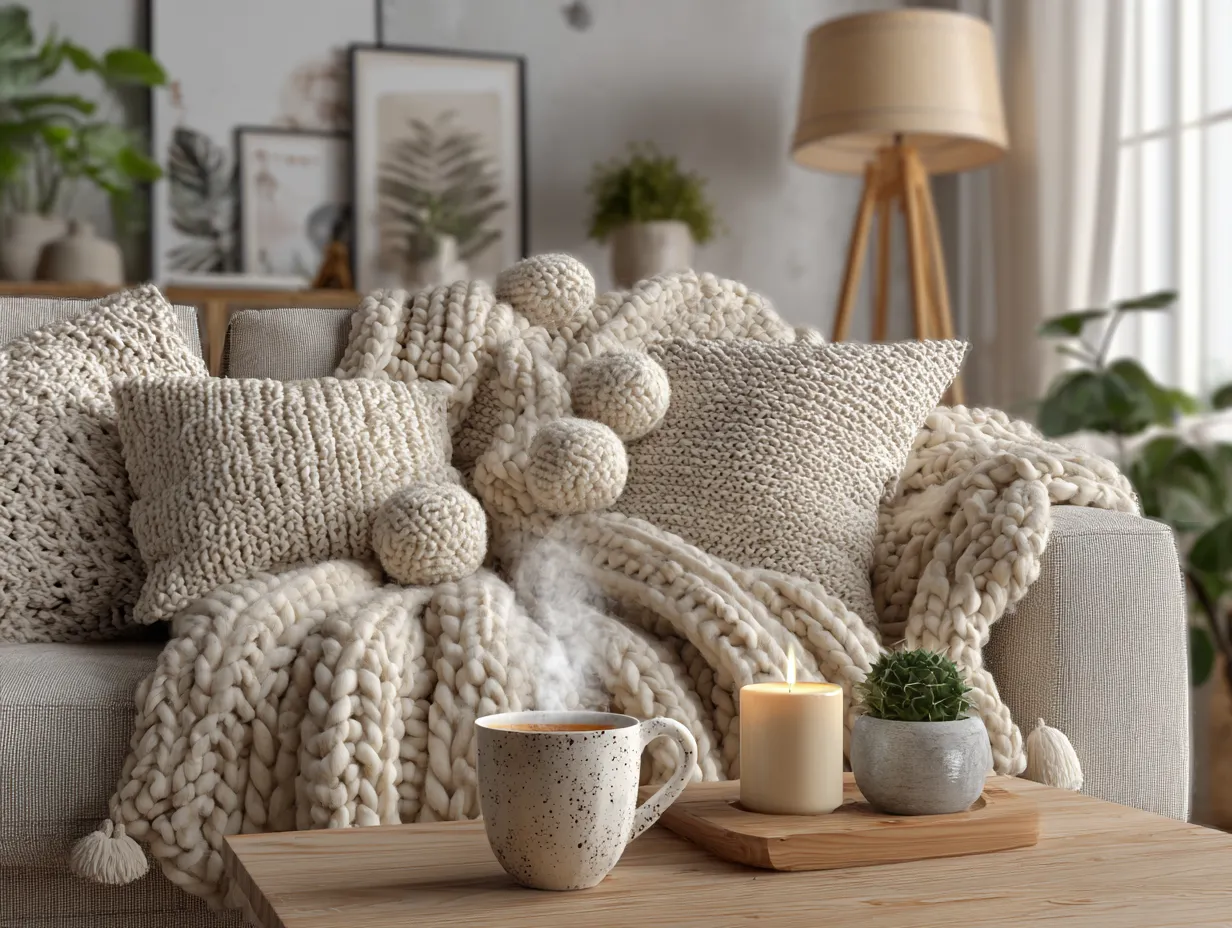 * **Soft Textures:** Think plush throws, knitted cushions, and soft rugs that invite touch. 🧣