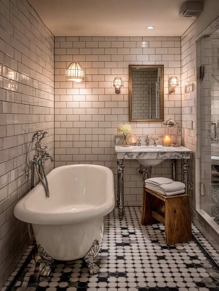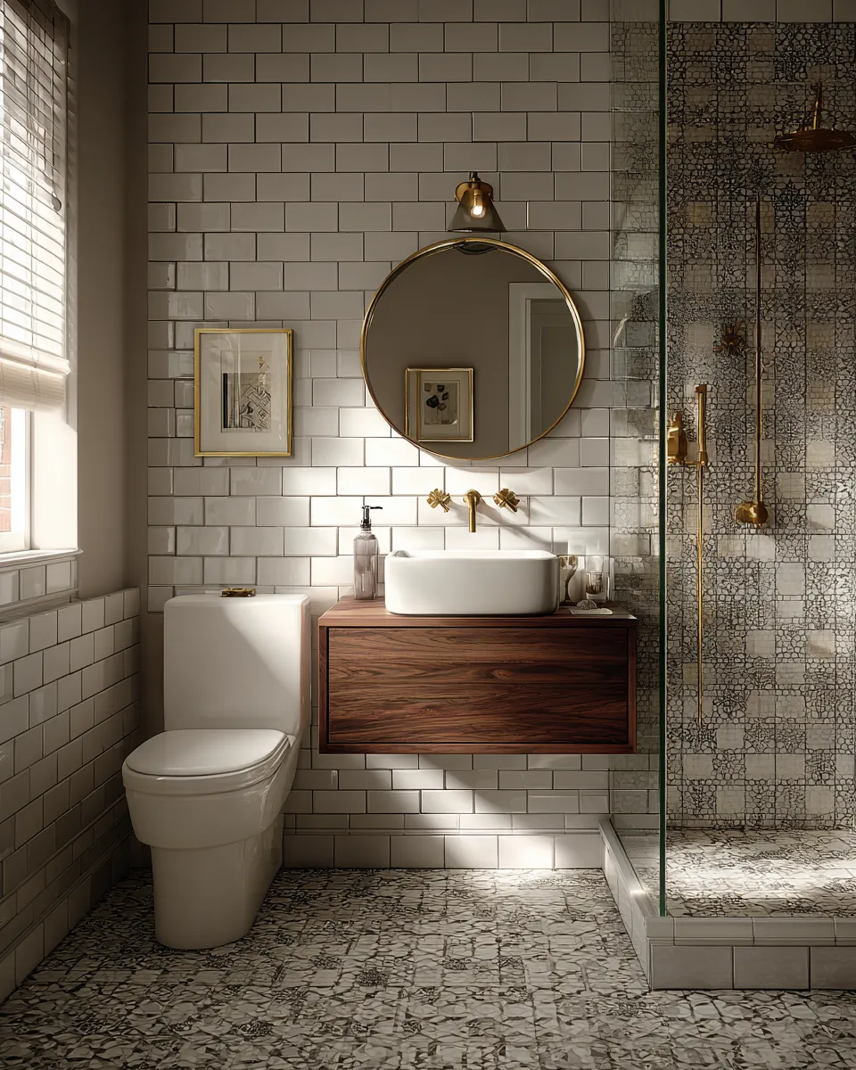 * **Fixtures:** Brass or black fixtures for a sophisticated touch.