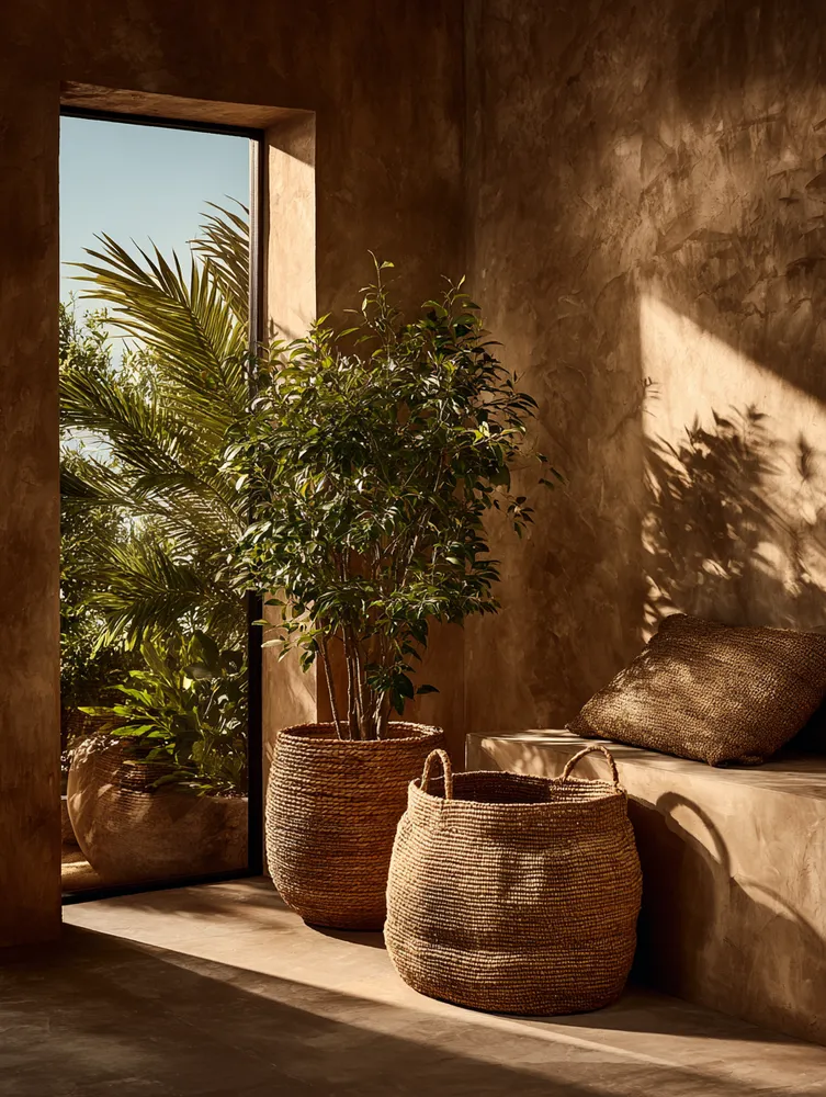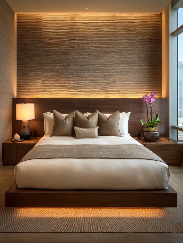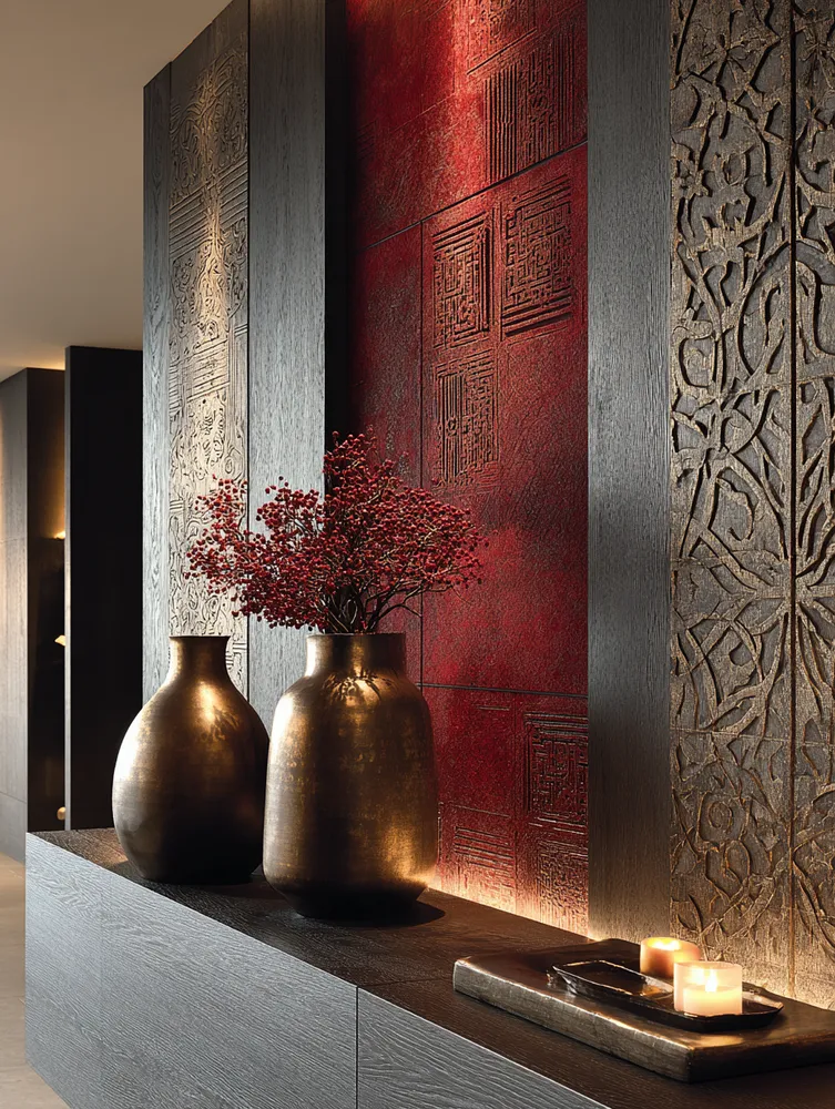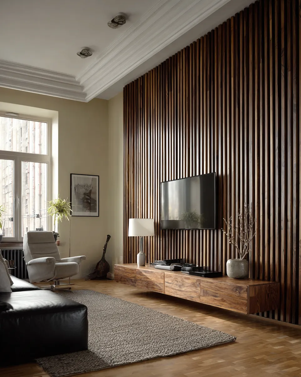 * **Wood Paneling:** Walnut or teak vertical slats for natural warmth.