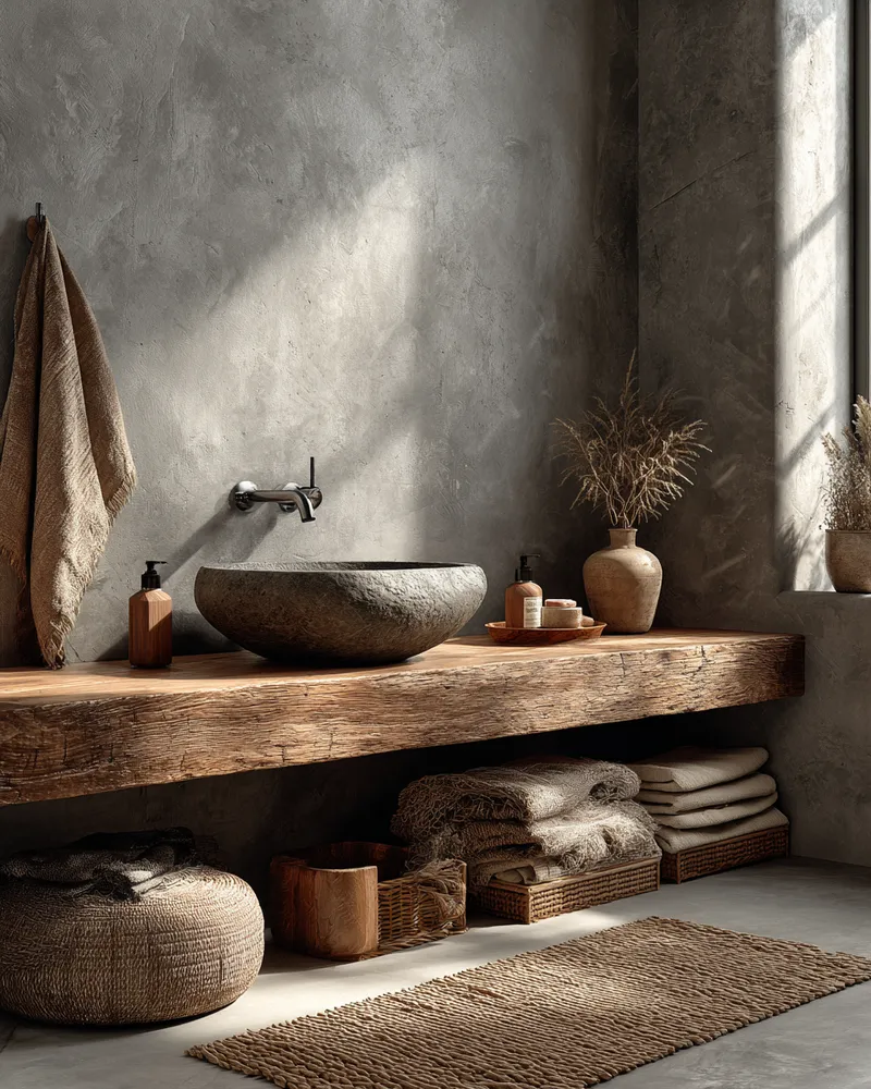 Create a spa-like sanctuary in your home with a Japandi-inspired bathroom. Simplicity, natural materials, and a sense of serenity are paramount. Opt for a floating vanity in a light wood finish. 🪵 Combine natural stone or ceramic tiles in muted, earthy tones for the walls and floor. Minimalist fixtures in matte black or brushed nickel add a touch of sophistication. Open shelving for towels and essentials in natural fibers enhances the calm. Add a small potted plant or a bamboo accent for a touch of nature. This design promotes relaxation and a tranquil start or end to your day. 🌿 #japandibathroomideas#bathroomideas#bathroomdesign#minimalistbathroom#spabathroom#japandi#scandidecor#homedesignideas#calmbath#renovationideas