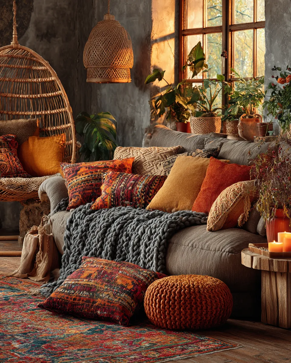 Transform your living room into a bohemian haven! It’s all about layering textures and showcasing your global treasures. 🌍