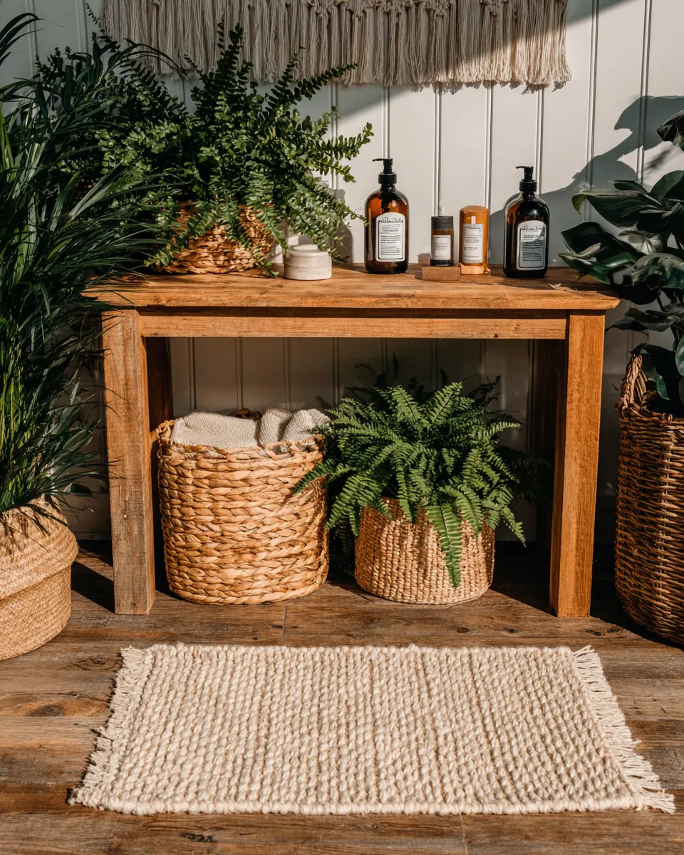 Even the bathroom can embrace your inner boho spirit! Let’s bring in natural textures and a sense of calm. 🛁
