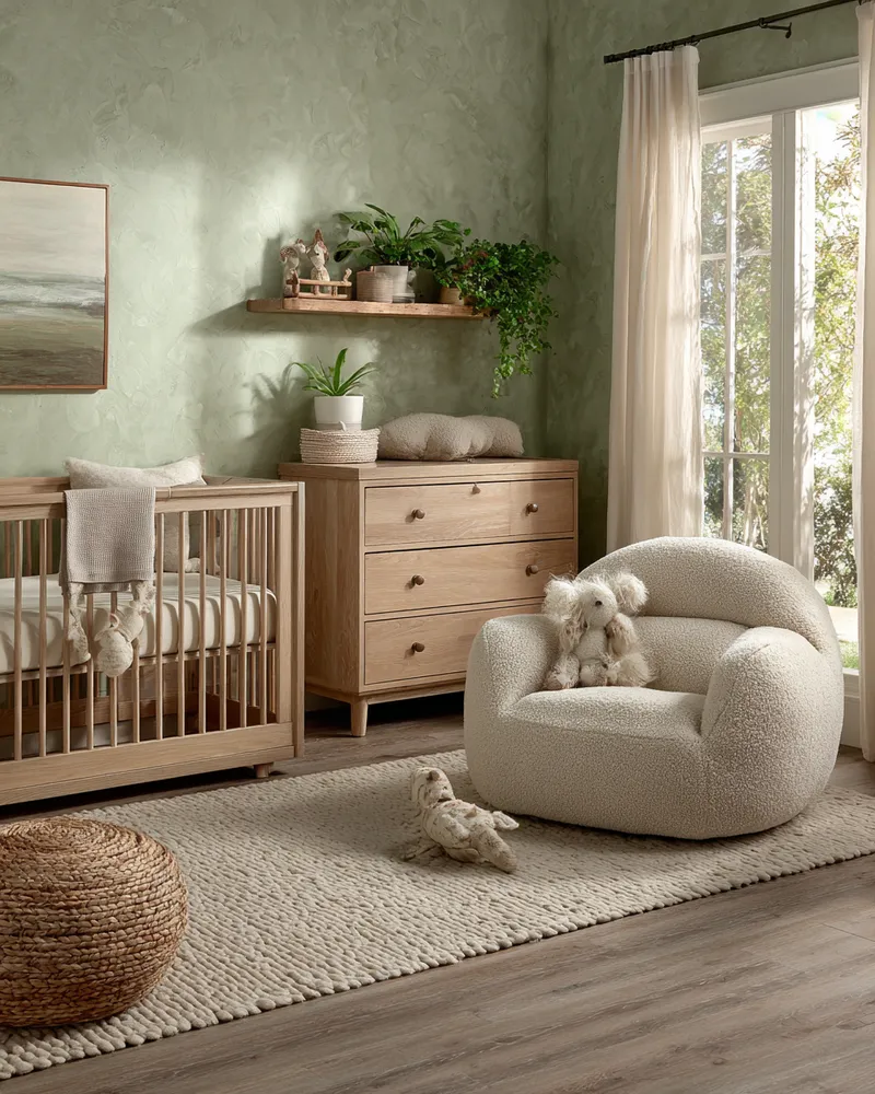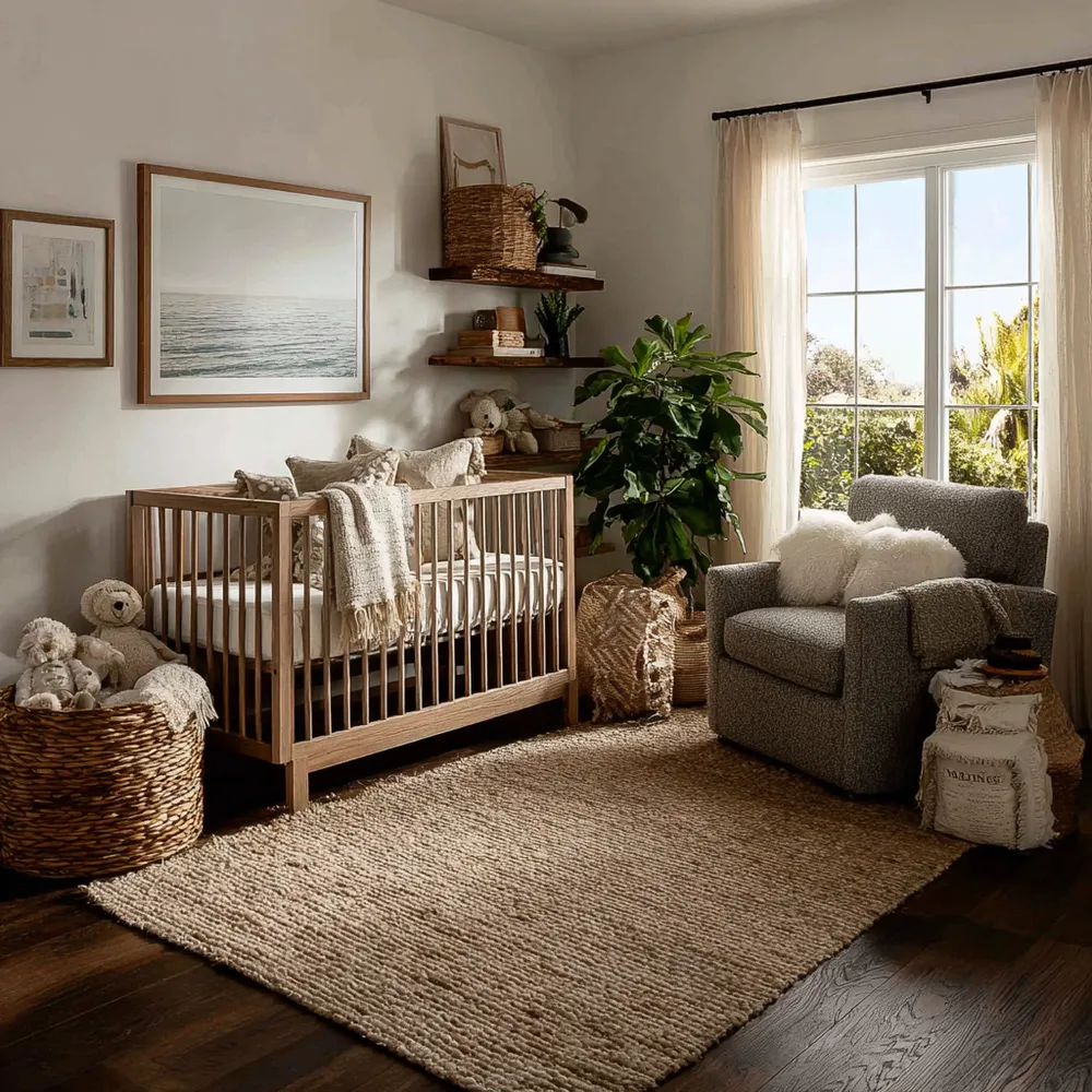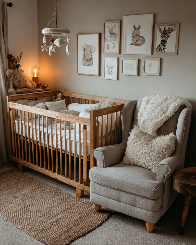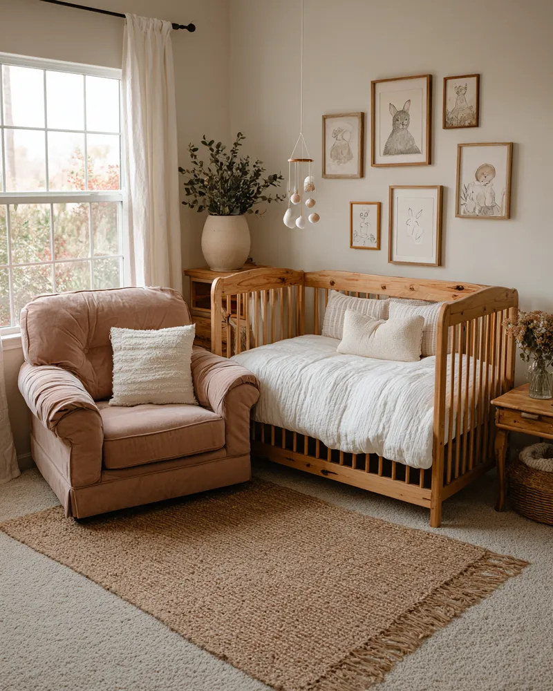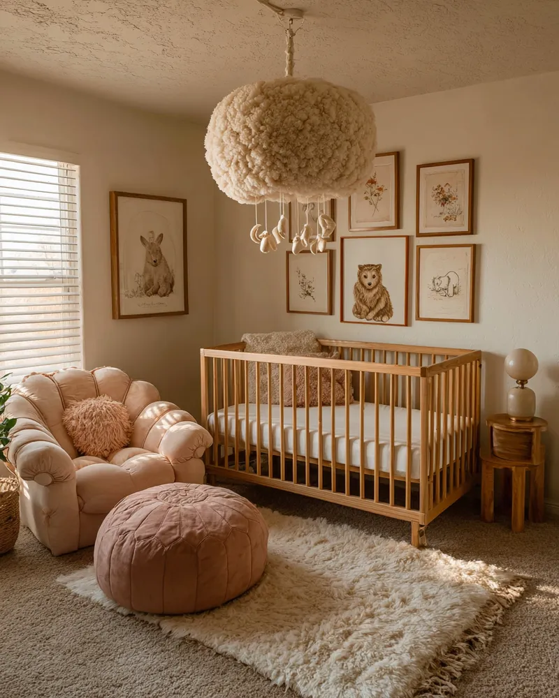 Incorporate subtle boho elements: macrame wall hangings, a rattan mobile, or a whimsical canopy. Display soft, nature-inspired art or framed ABCs. Add a comfortable rocking chair for quiet moments.