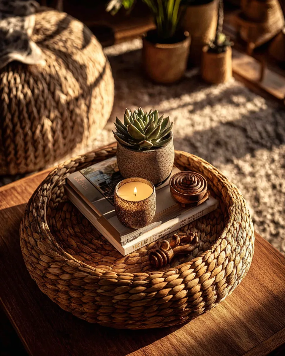 Your coffee table is a prime spot to showcase your boho style! Let's create a cozy, curated focal point. ✨