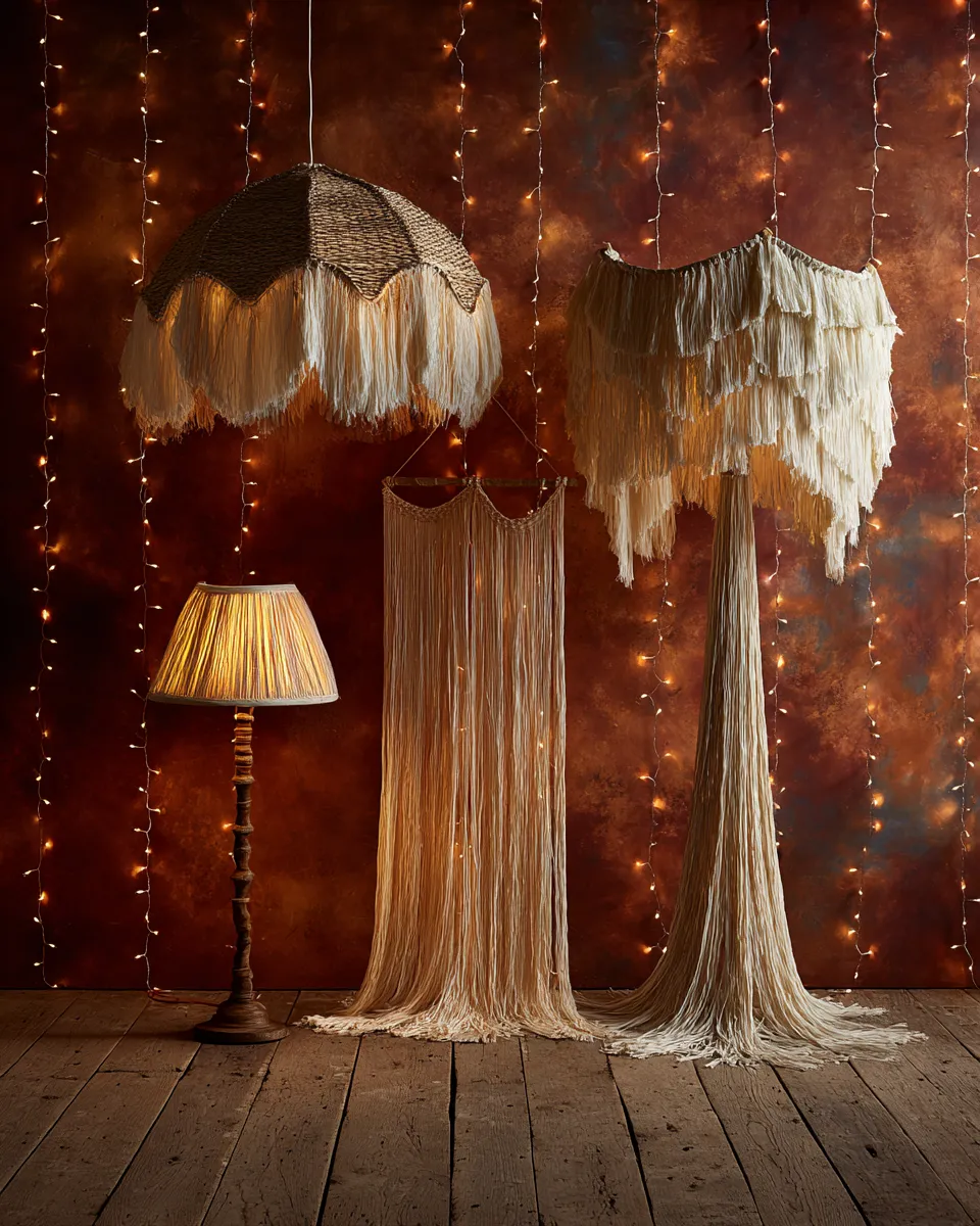 Think natural materials: rattan pendants, bamboo lanterns, macrame shades, or woven baskets repurposed as light covers. Look for organic shapes and handcrafted details.