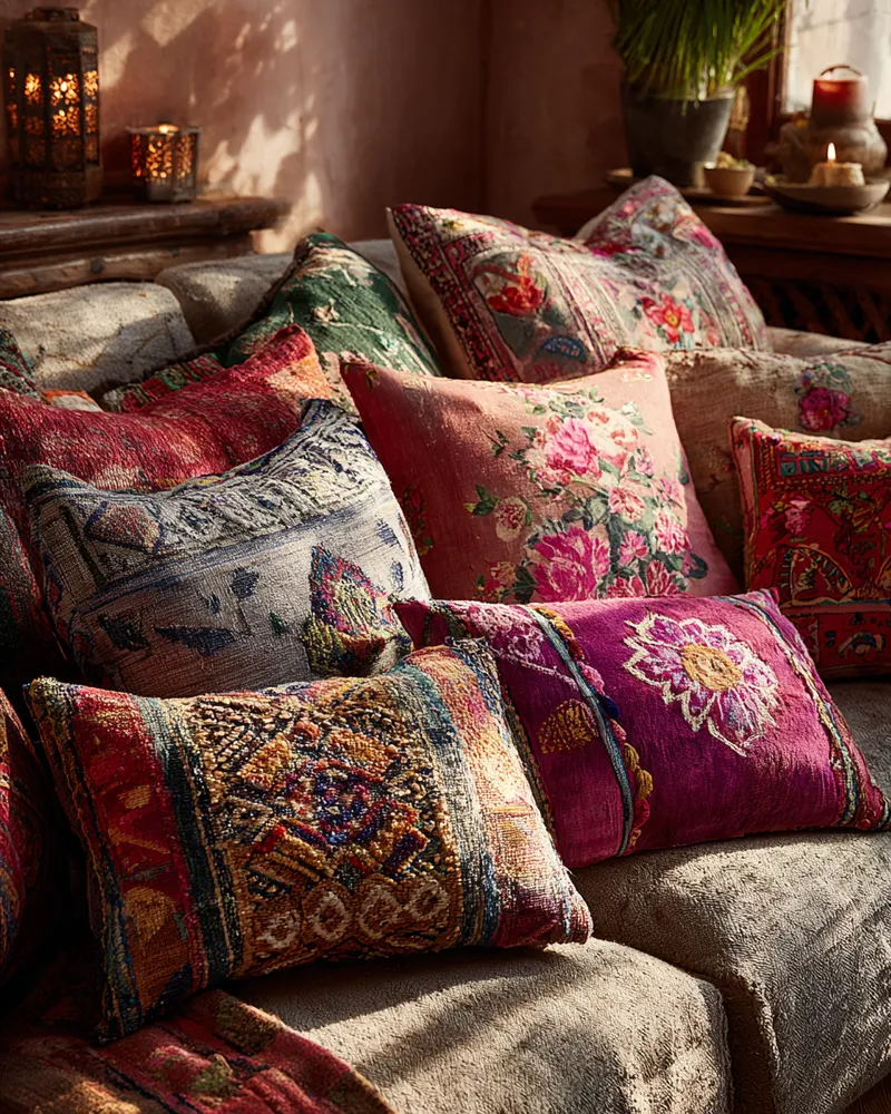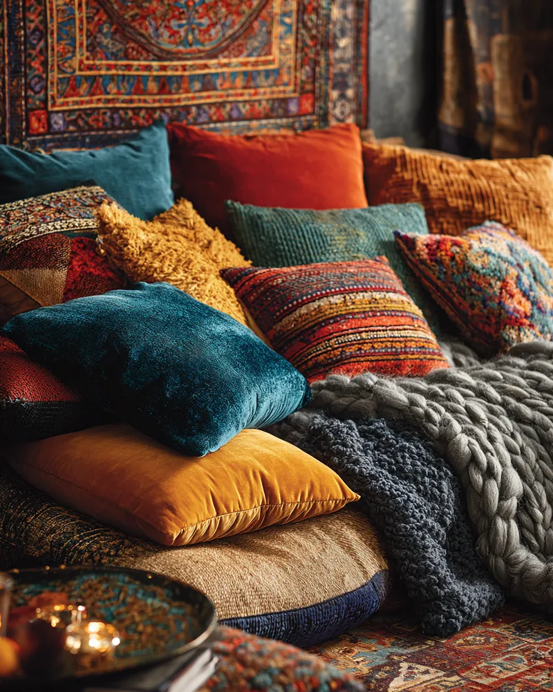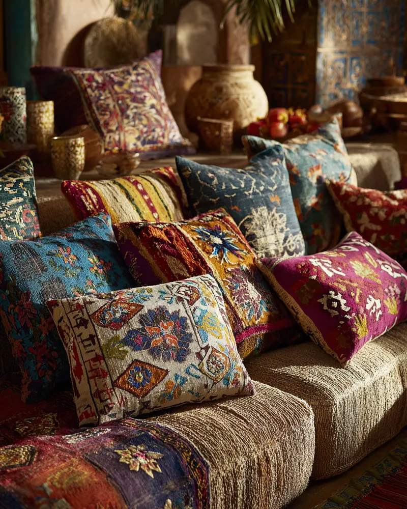 Pillows and cushions are the ultimate boho layering tool! Let's inject comfort, color, and personality. ✨
