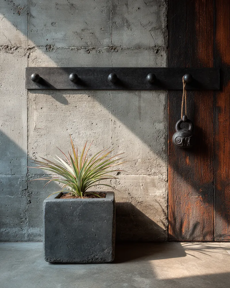 Make a powerful first impression! Industrial design isn't just about function; it's about character. For your entryway, consider raw metal accents to instantly add that sought-after industrial vibe. 💥 Think a hefty cast iron door knocker, a blackened steel coat rack, or even a small, concrete plant pot. These pieces speak to durability and timeless style. Pairing them with a simple, distressed wooden console creates a balanced and inviting feel. Embrace the texture and history of these materials.