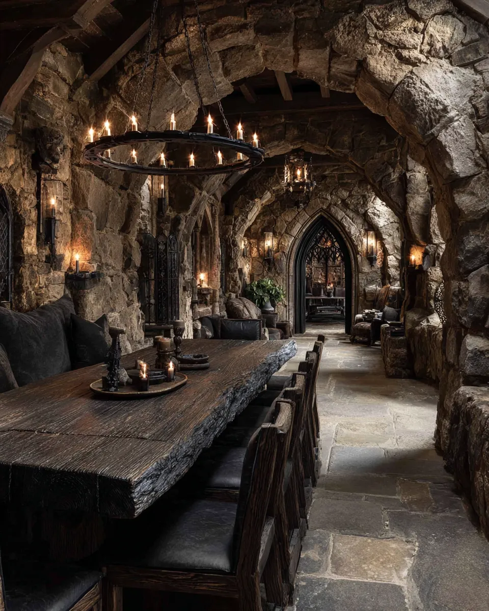 Bring a touch of historical mystique to your gatherings. #gothicrevival#farmhousedining#rusticdecor#gothicfarmhouseideas#historicalhomes#diningroomdesign#darkacademia#architecturalstyle#vintagecharm#diningideas