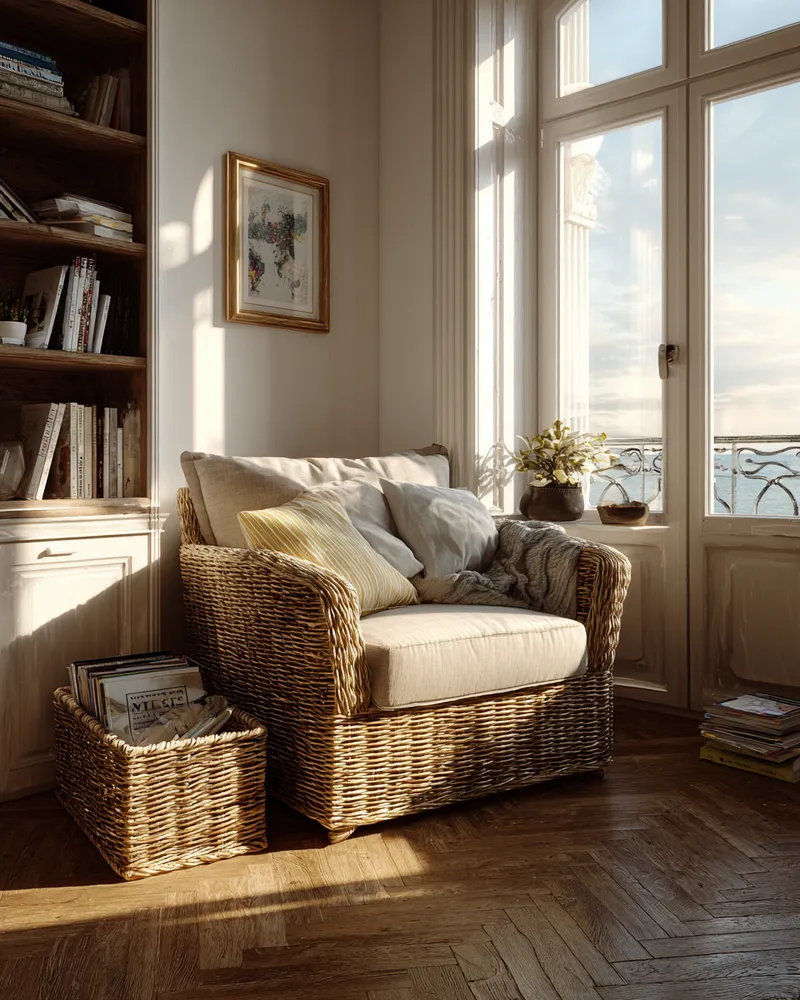 Think about displaying vintage rugs not just on the floor, but perhaps artfully hung on a wall or draped over a bench. Hand-woven throws can be artfully folded on a chaise lounge or stacked in a beautiful basket.