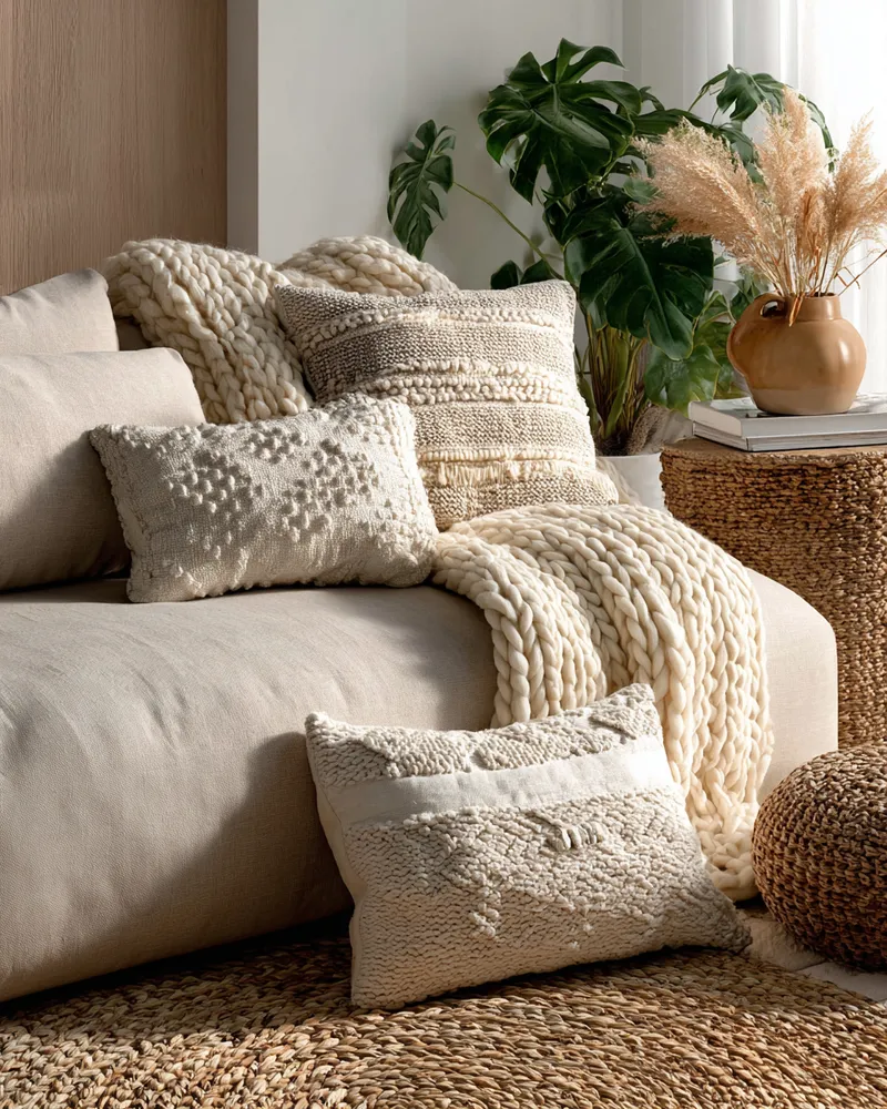 Layering these elements creates a rich, inviting atmosphere without adding clutter. ✨ It’s about creating a tactile experience that makes a space feel more grounded and lived-in. #interiordesign#texturedecor#minimalistdecor#homedecor#warminteriors#naturaltextures#decorideas#cozyhome#livingspace#designinspiration
