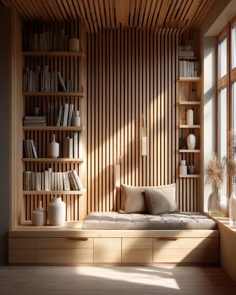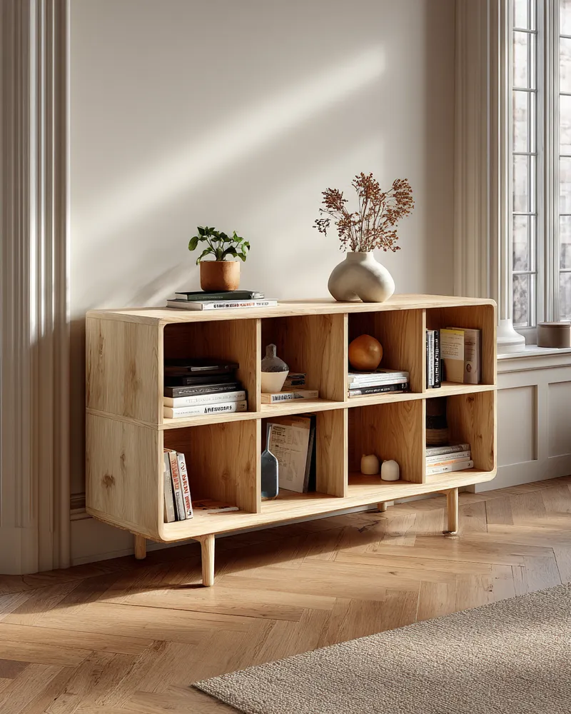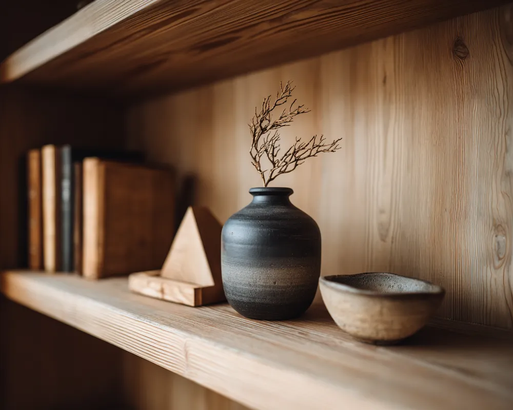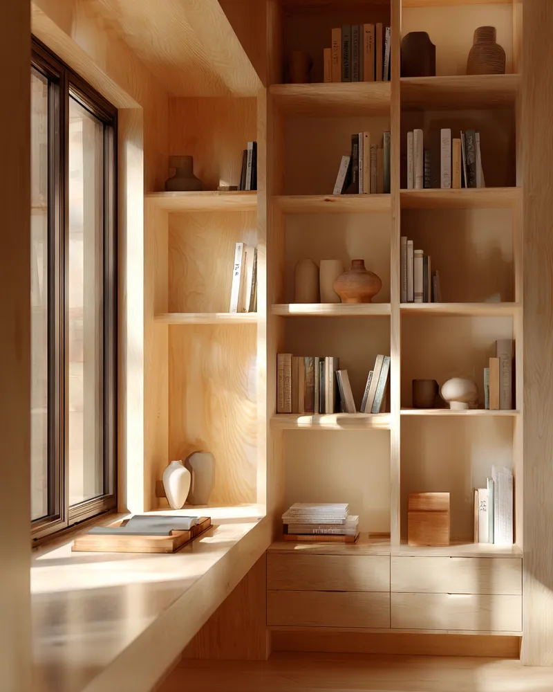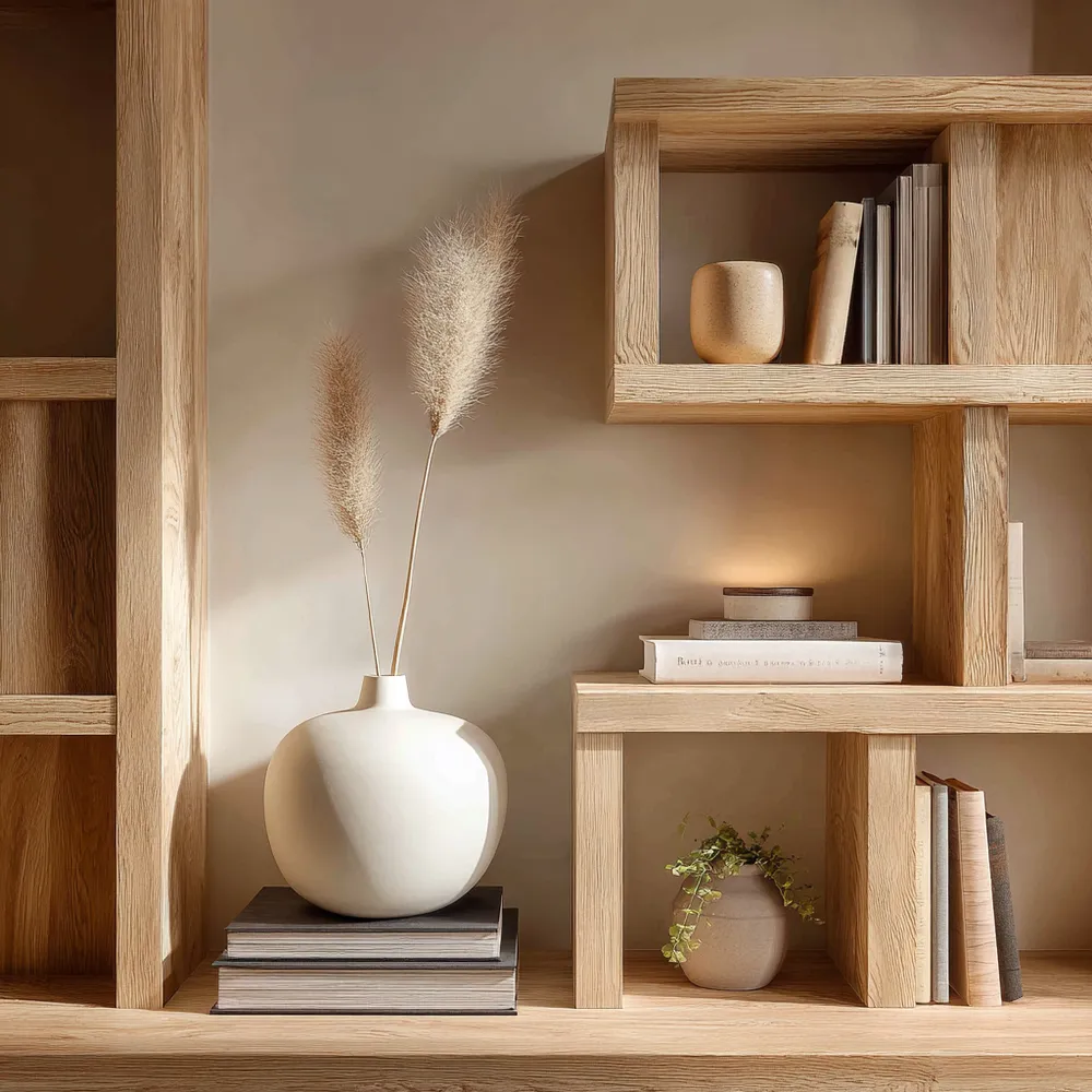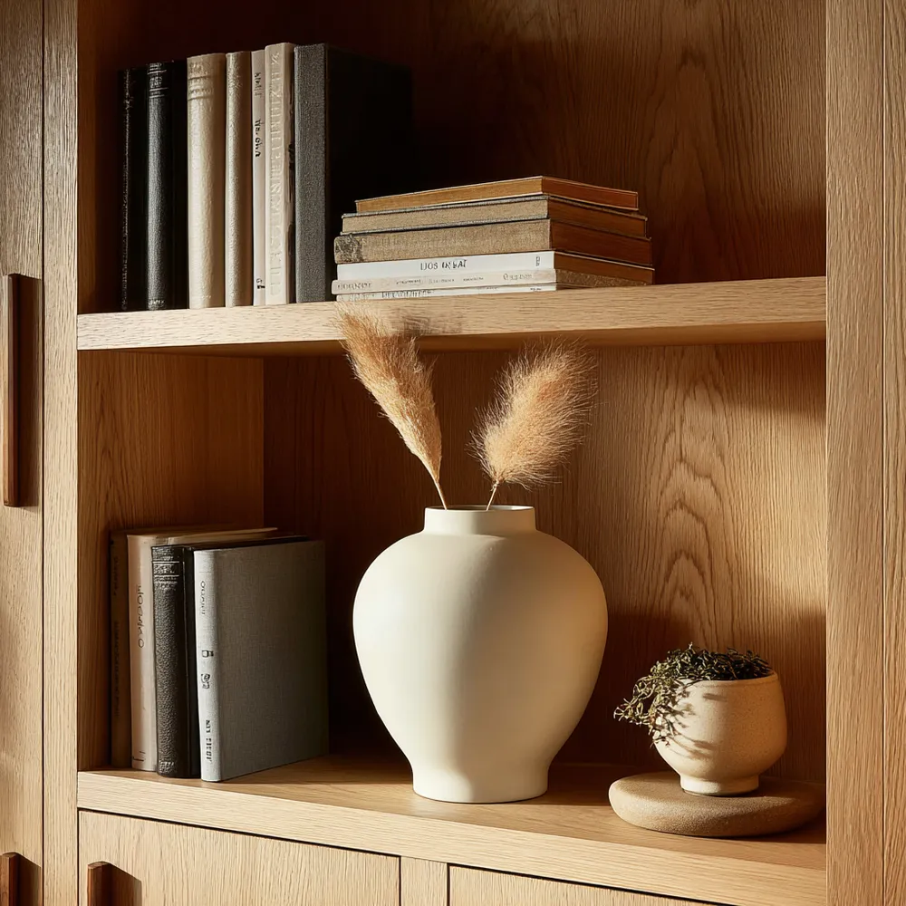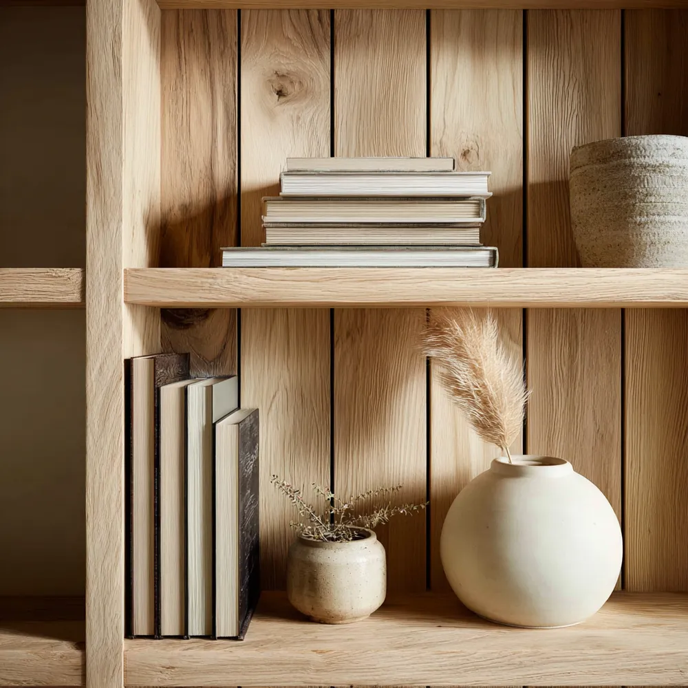 Styling a bookshelf in a Japandi home is about achieving a harmonious balance between order and aesthetic appeal. It’s not just about storage; it’s about creating visual tranquility.