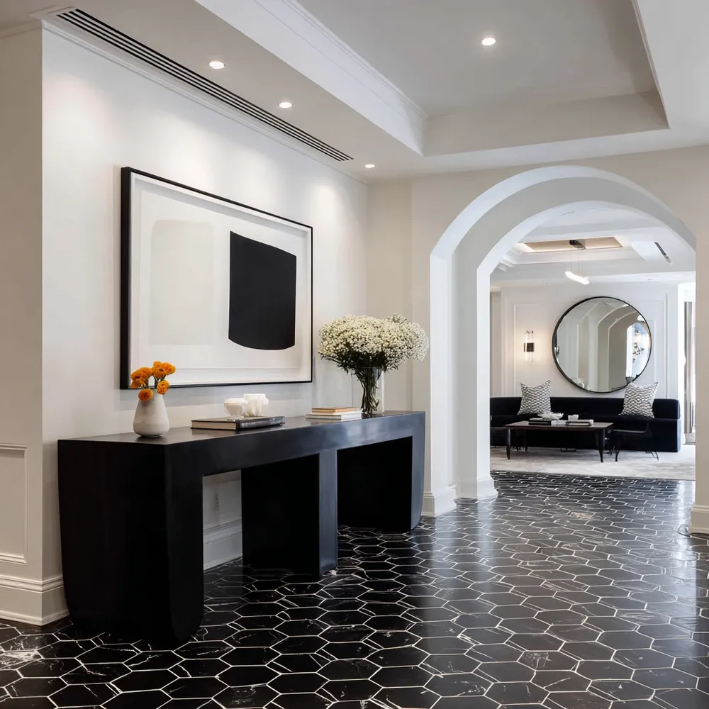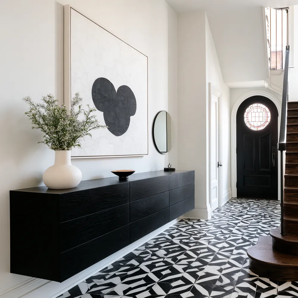 * **Contrast Wall Art:** Abstract black and white art or framed minimalist prints.