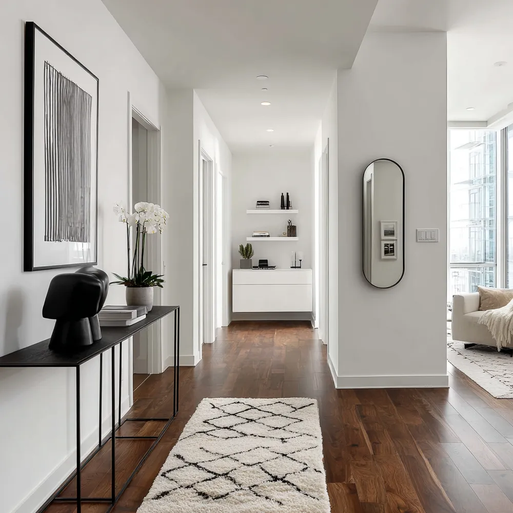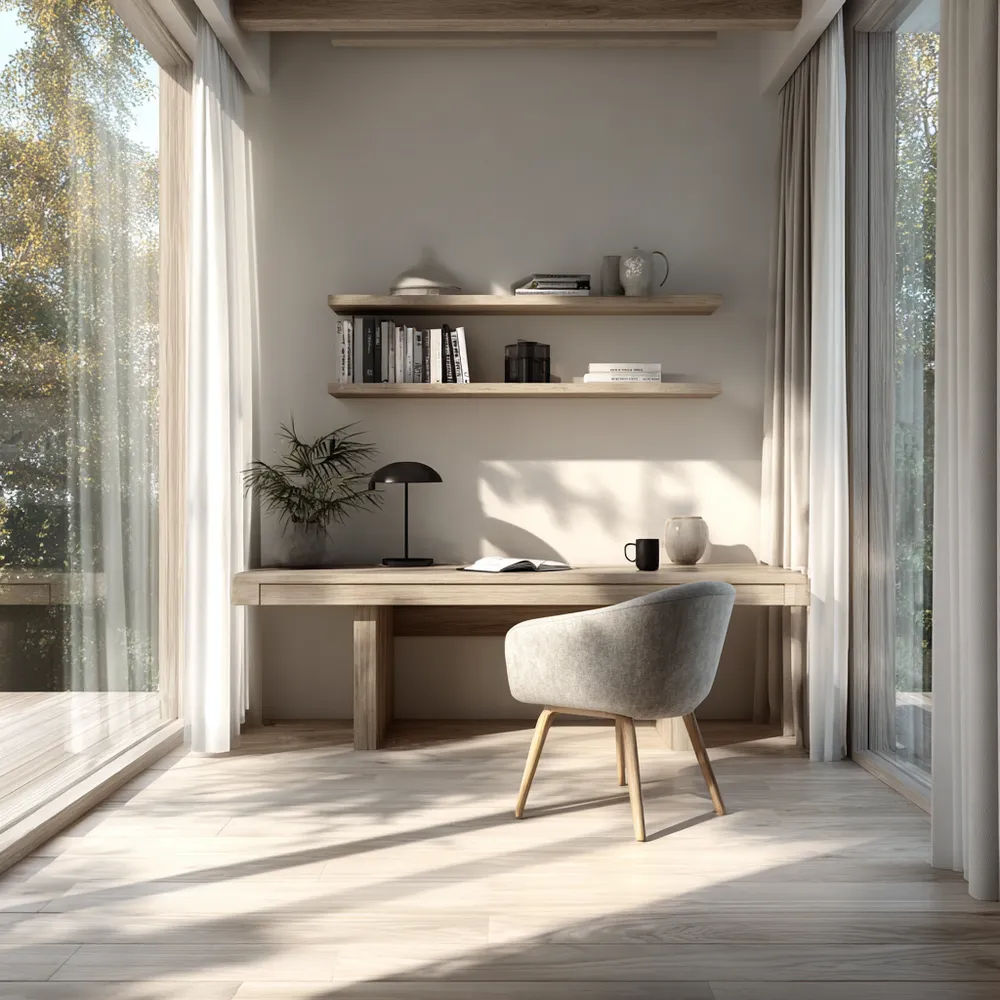 * **Sleek Desk:** A minimalist black or white desk as the focal point.