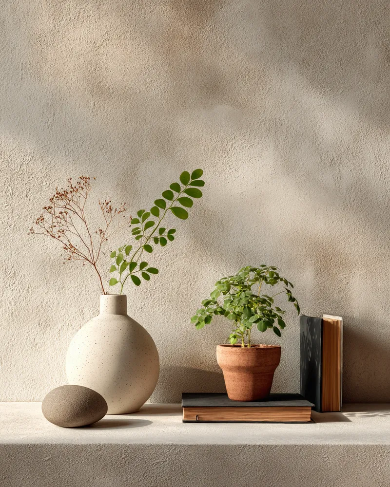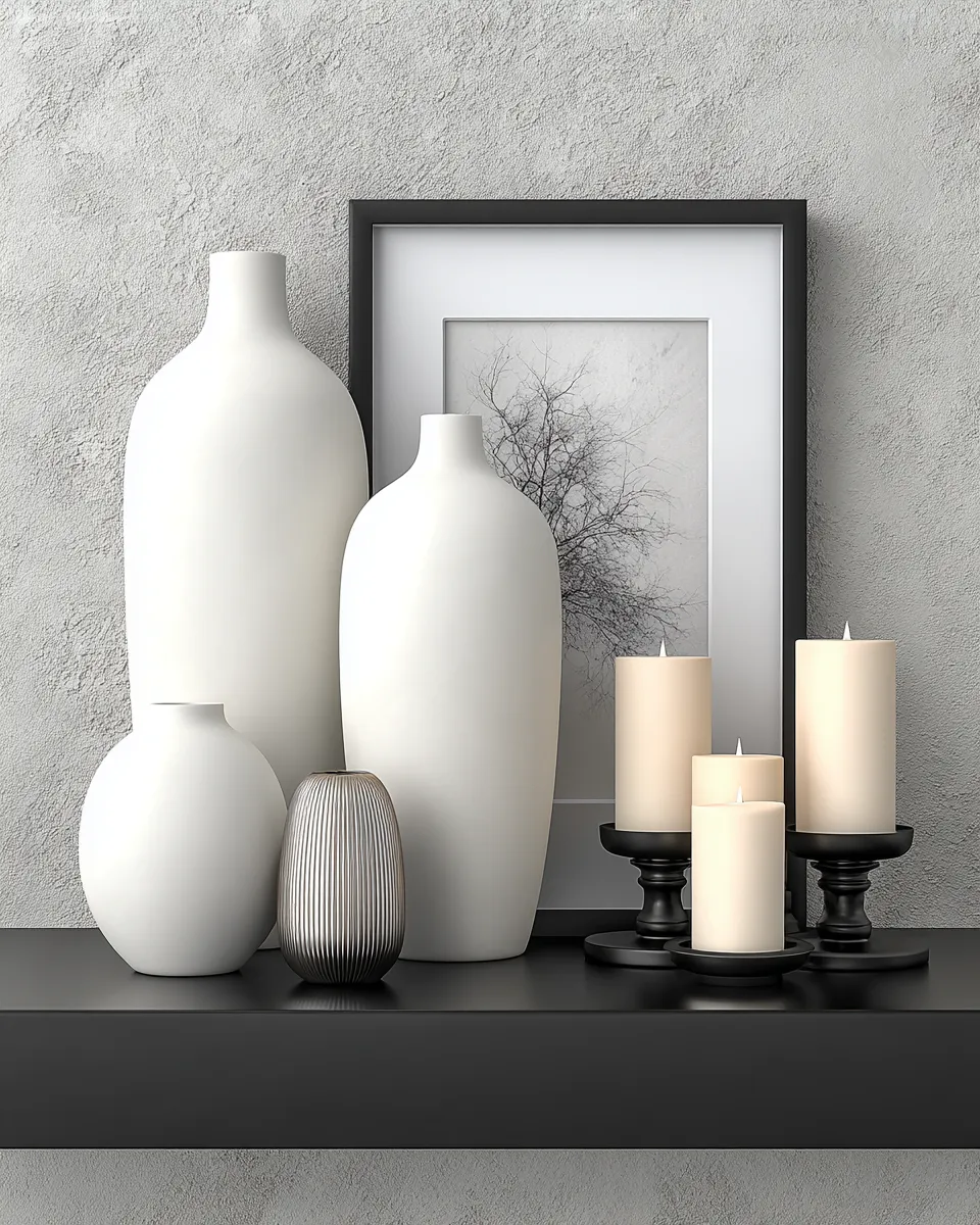 * **Candle Accents:** Simple black or white pillar candles on minimalist holders.