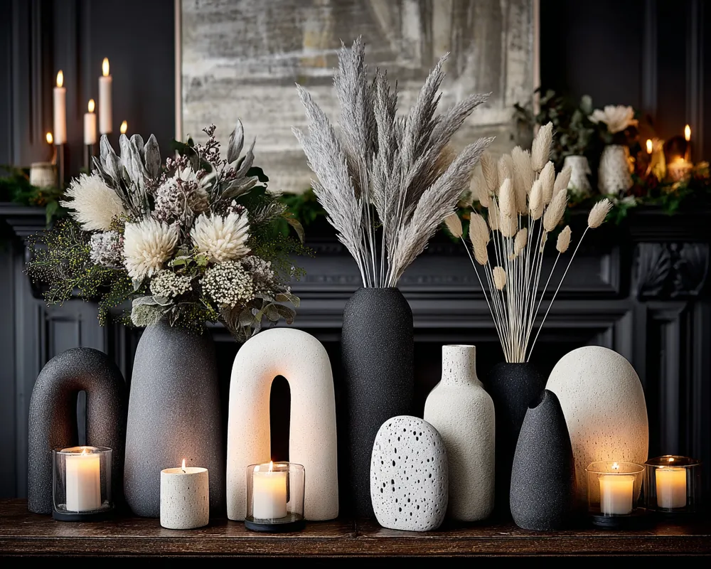 Your mantelpiece is a prime spot for showcasing your style. Achieve understated elegance and striking visual appeal with a minimalist monochrome approach.