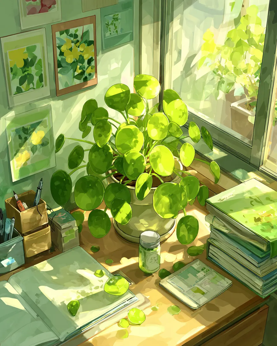- **Desk Plant**: A vibrant green plant to purify air and boost mood. 🌱
