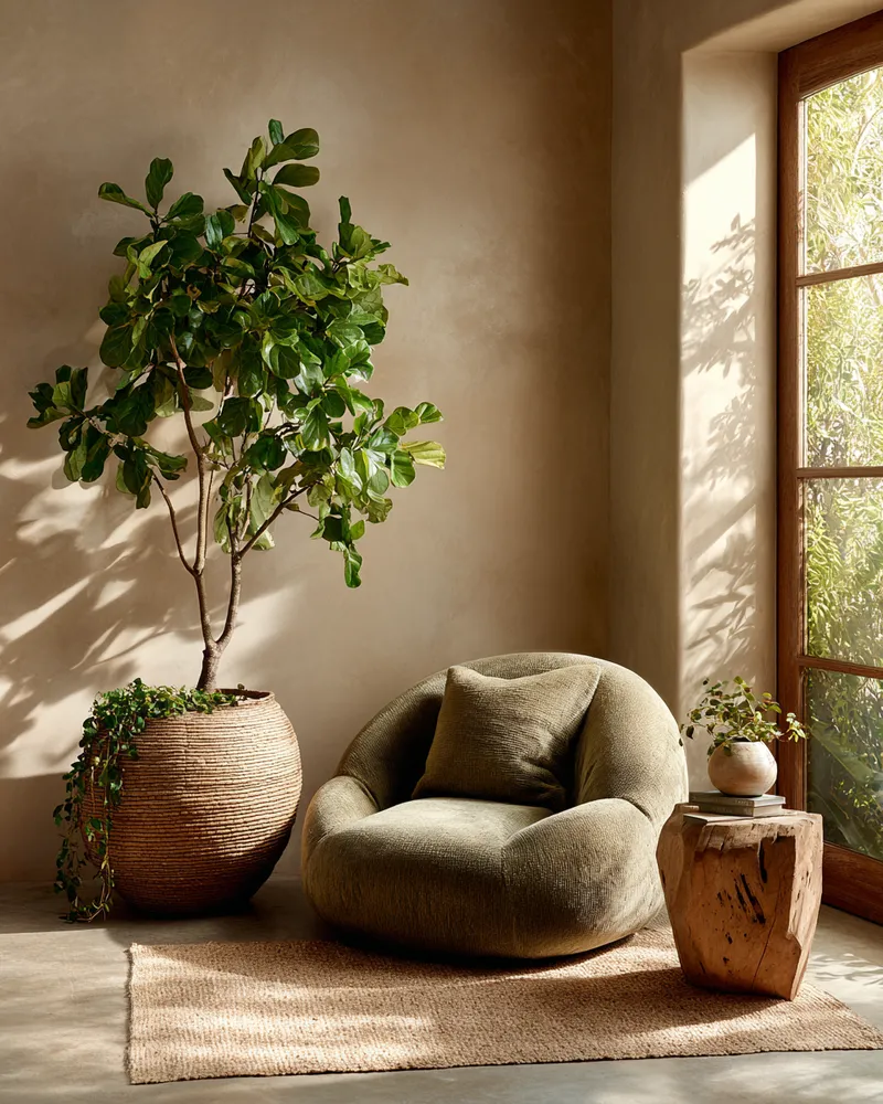 Comfort is key to a biophilic sanctuary. 😌 My favorite way to achieve this is through soft, organic textures that invite relaxation and tactile engagement. Embrace the natural touch. 🤎