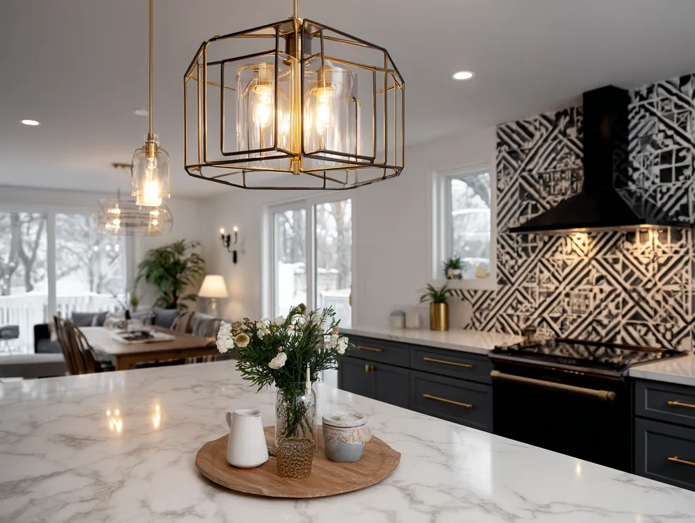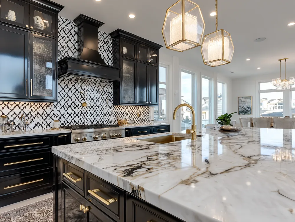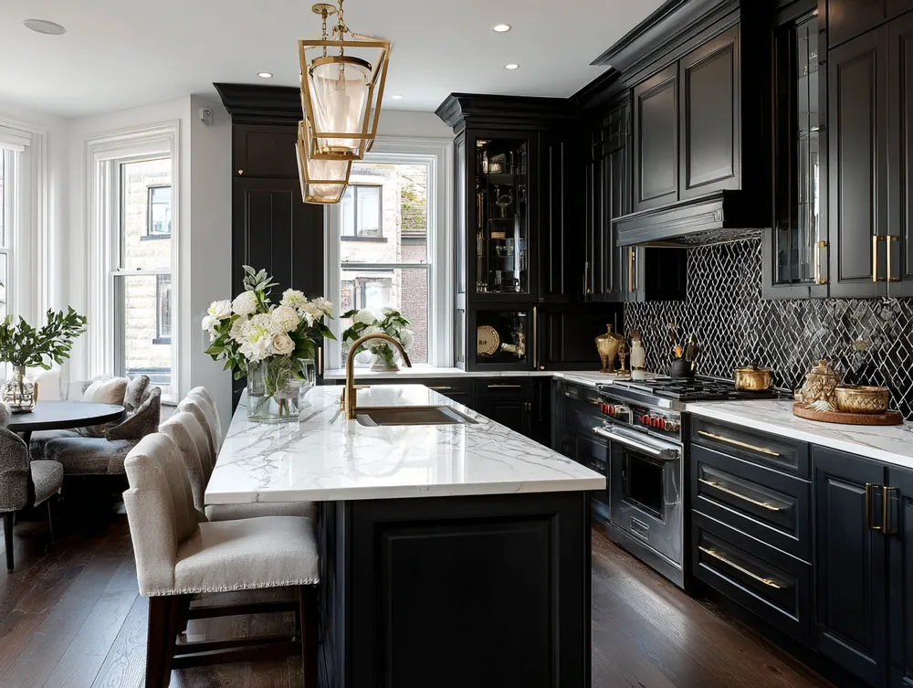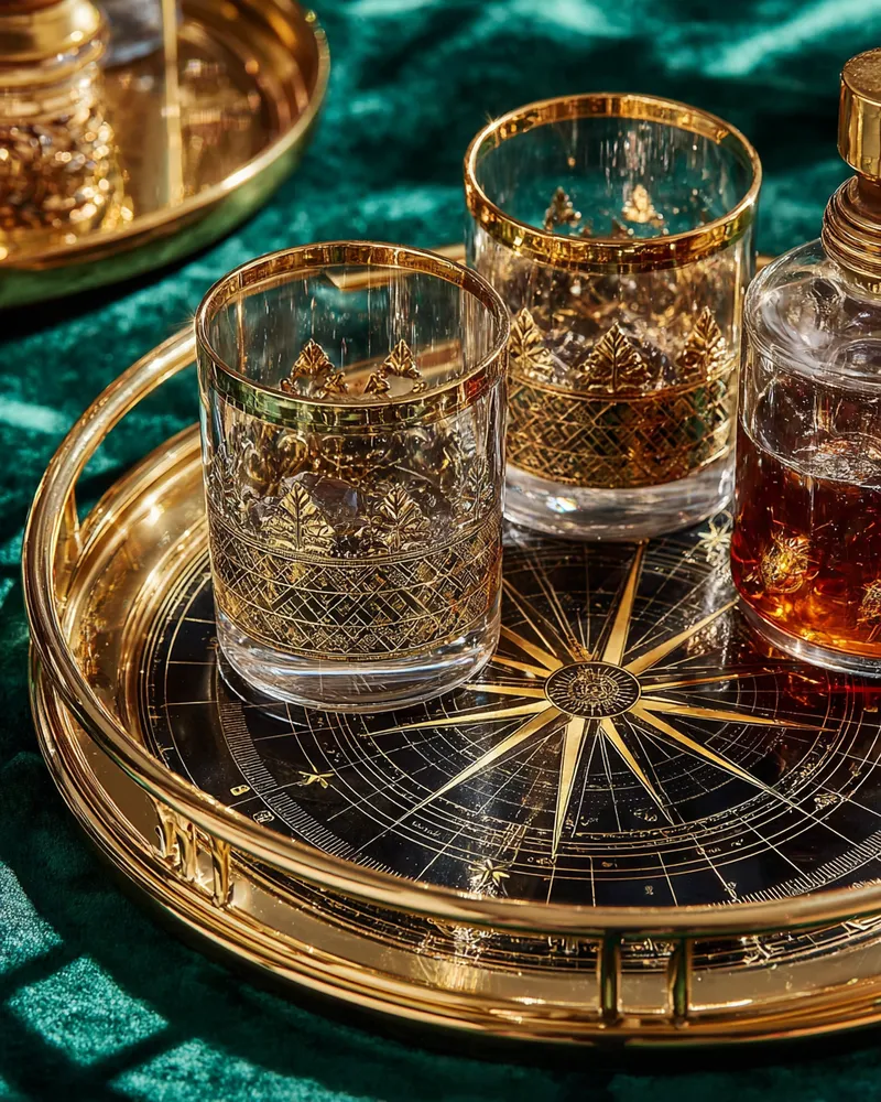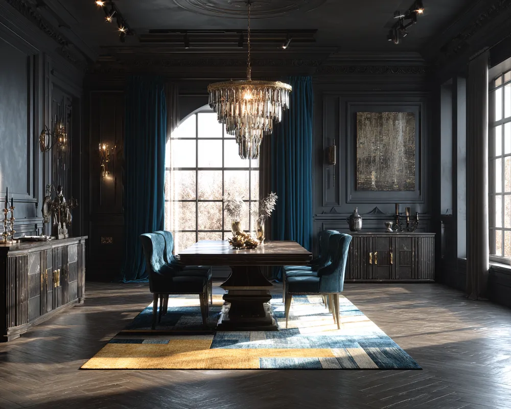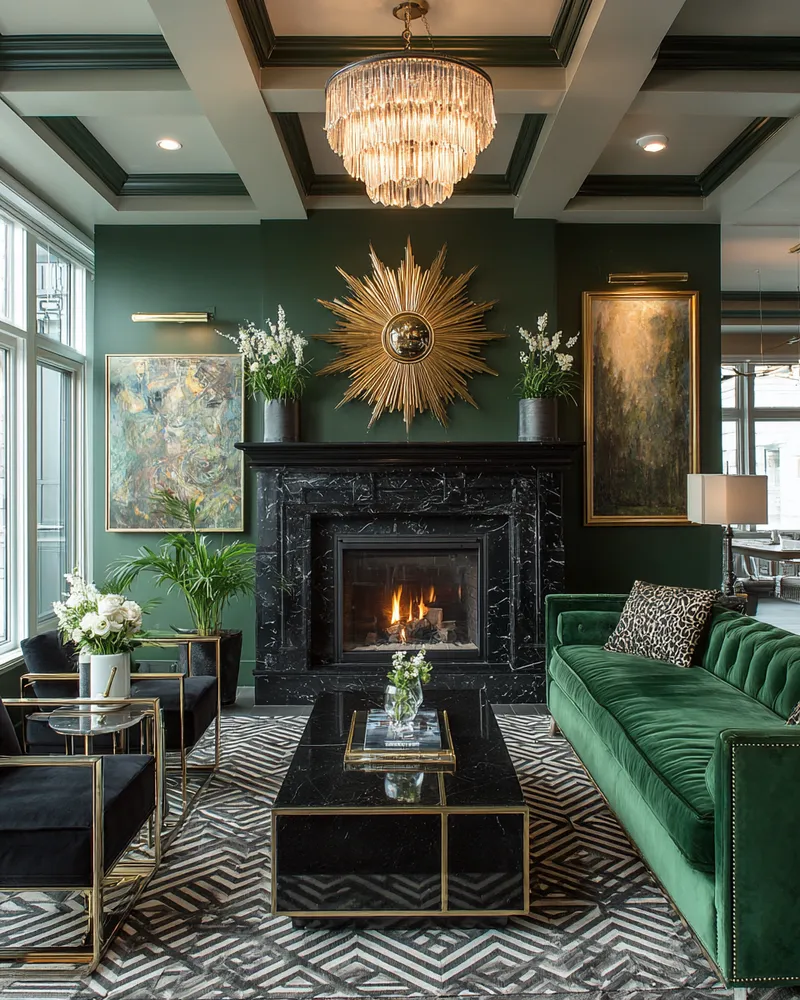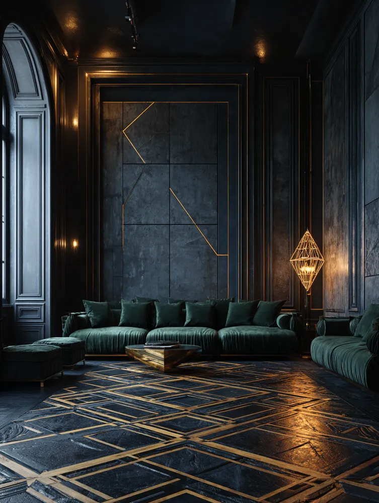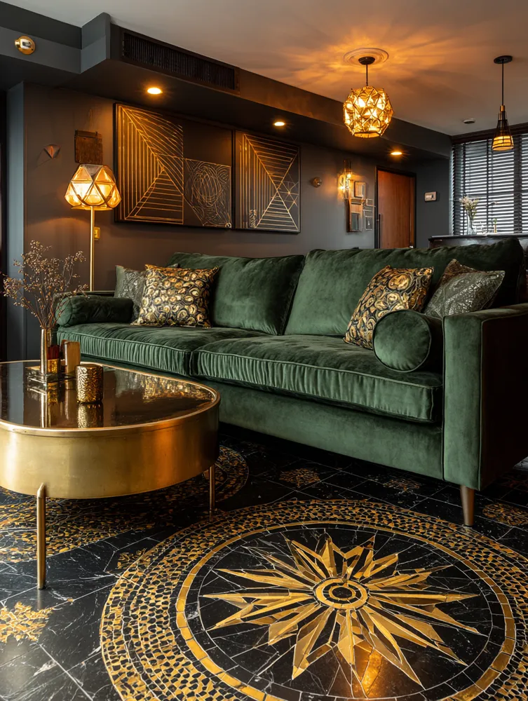 * **Luxurious Materials:** Incorporate brass, velvet, marble, and dark woods.