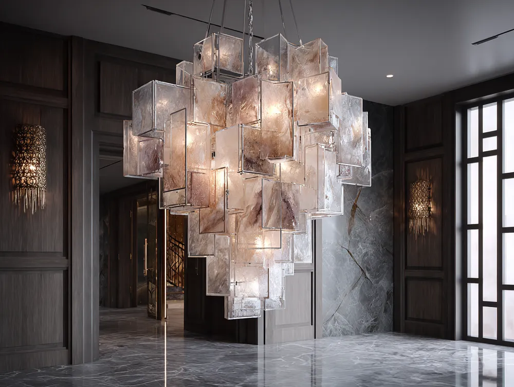 * **Statement Chandeliers:** Think tiered crystal, geometric metal designs, or bold fan shapes.