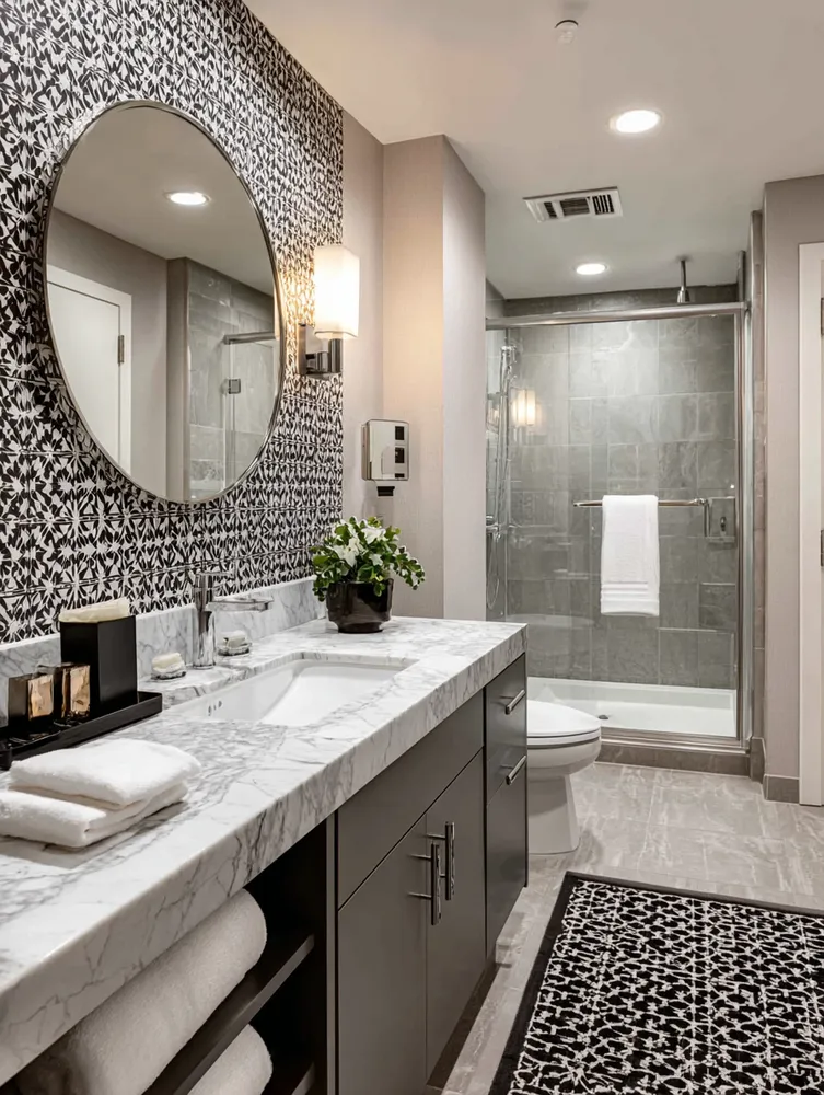 * **Marble Accents:** Use marble for countertops, vanities, or wall panels.