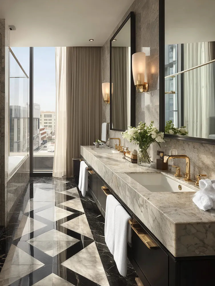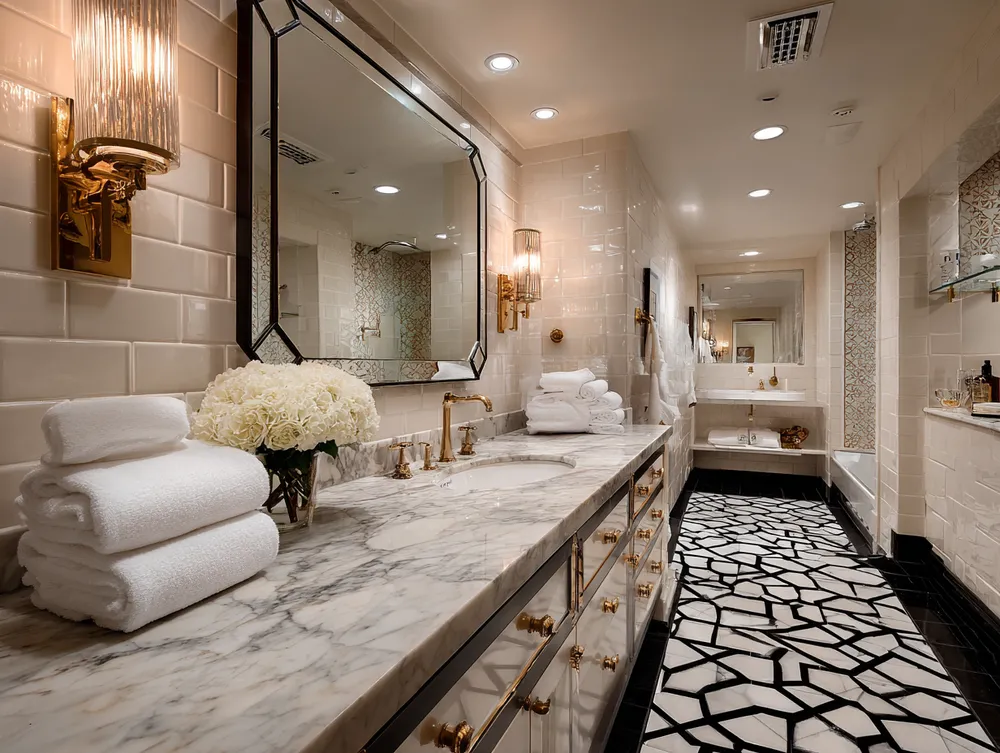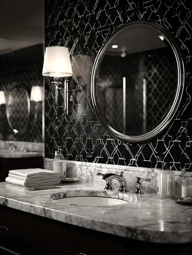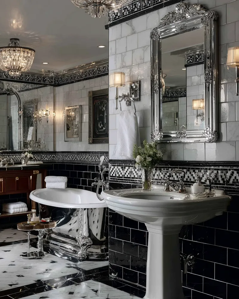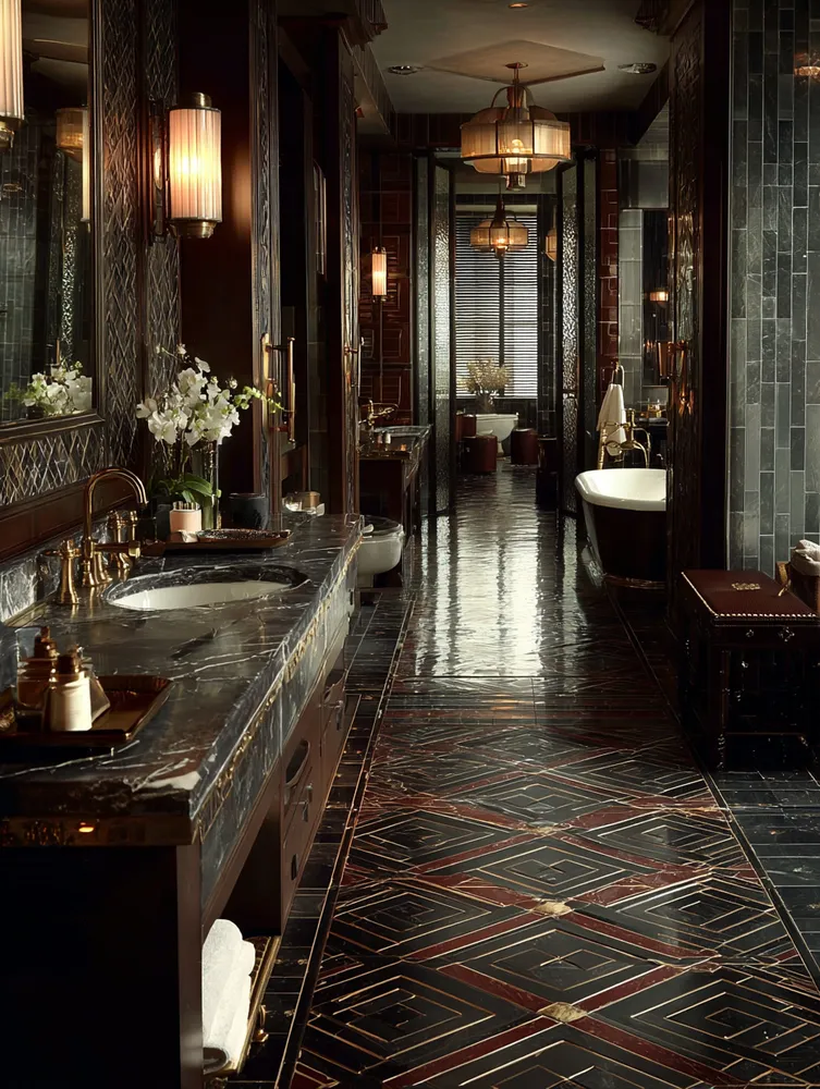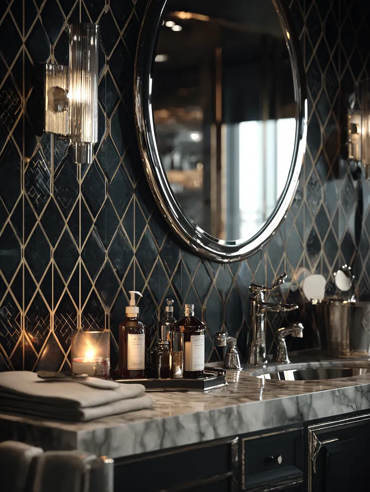 Transform your bathroom into a luxurious sanctuary with the timeless glamour of Art Deco. It’s about rich materials, bold patterns, and a touch of spa-like indulgence. ✨
