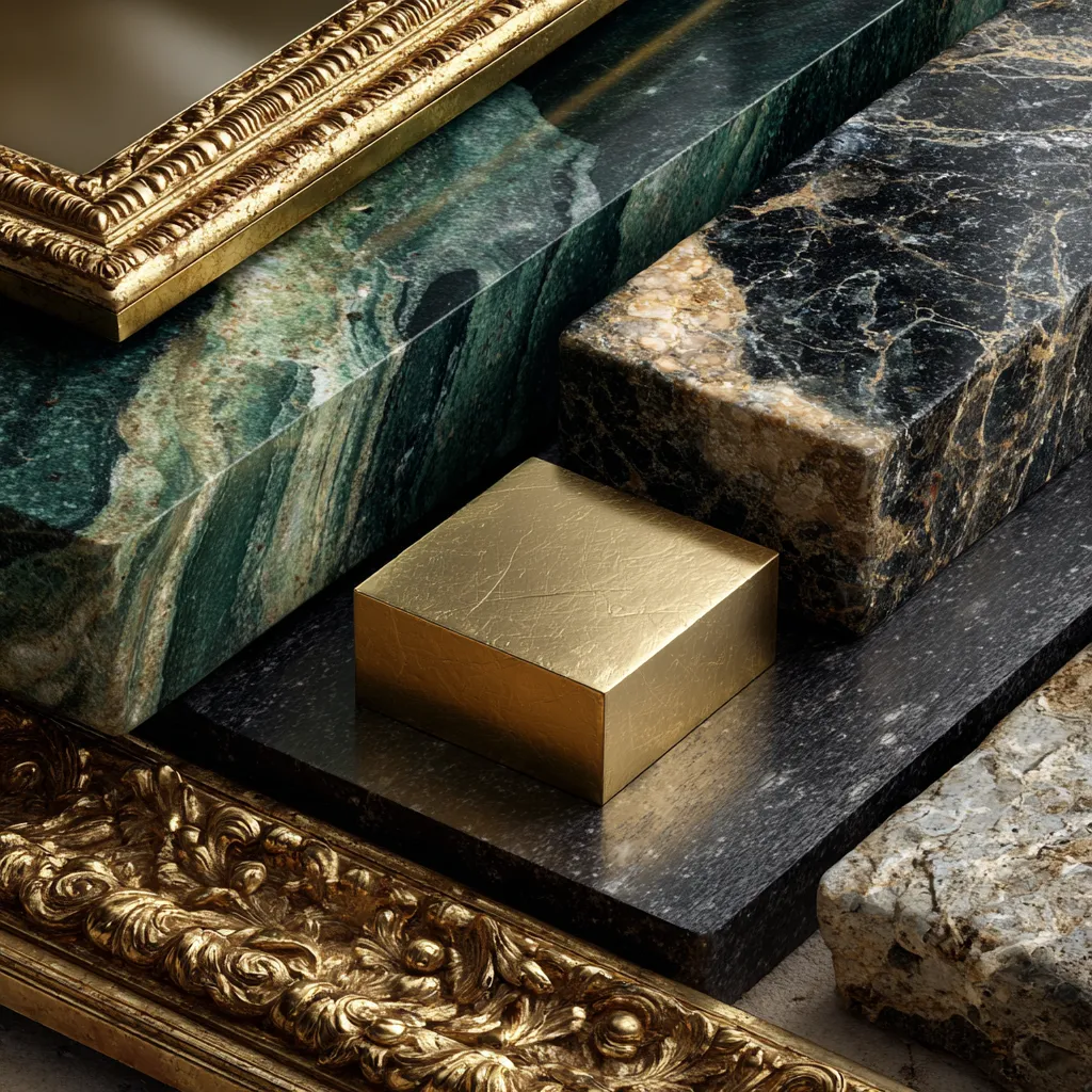 * **Polished Metals:** Brass, chrome, gold, and silver for fixtures, frames, and accents.