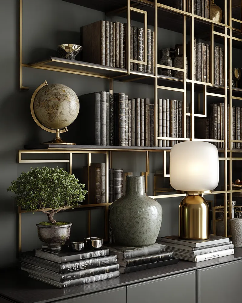 Art Deco Accents: Styling Your Shelves with Glamour 📚