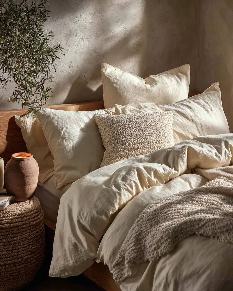 * **Serene Color Palette:** Stick to soft neutrals like off-white, gentle grays, and calming earth tones. Think cloud-like comfort.