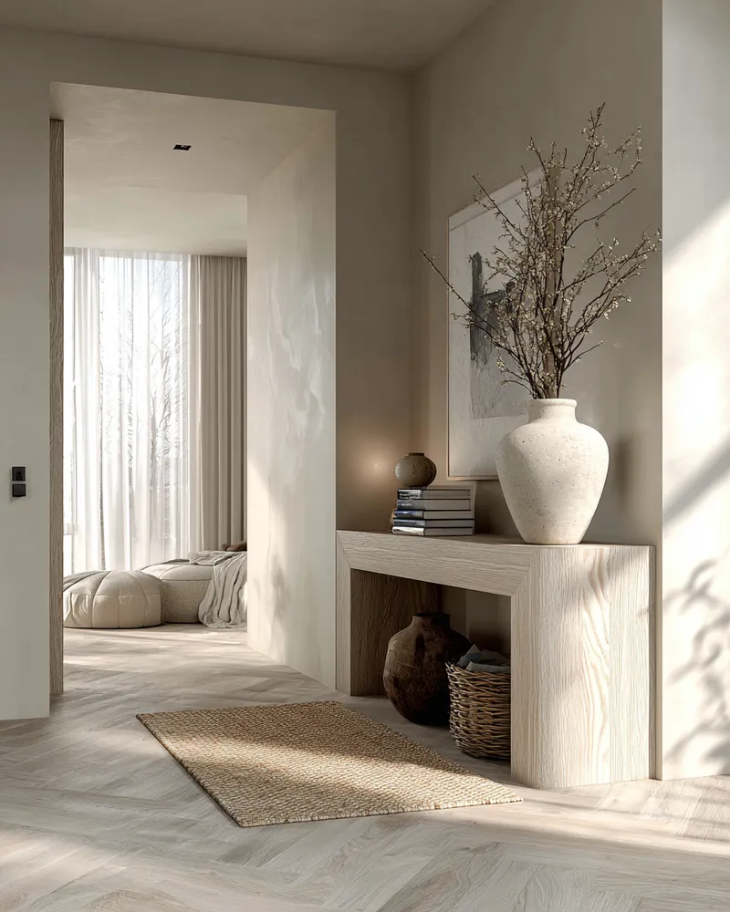 It's all about creating a grounded, welcoming atmosphere. Save this for your entryway transformation! 🚪 #interiordesign#homedecor#japandi#japandiideas#entrywaydecor#entrywayideas#minimalistdecor#naturalmaterials#serenewelcome#cozyhome