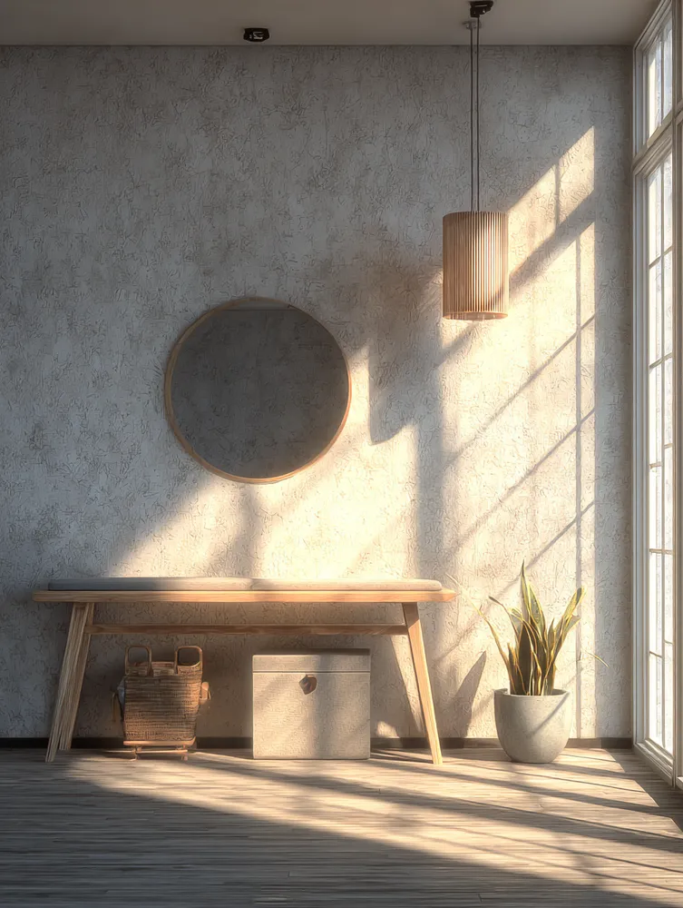 Dreaming of a home that whispers calm the moment you step inside? Let's create a Japandi-inspired entryway that blends Japanese serenity with Scandinavian coziness. Focus on natural materials like light oak, rattan, and textured plaster walls. Minimalist, functional furniture is key – think a sleek wooden bench and a slim console table for essentials. 🌱