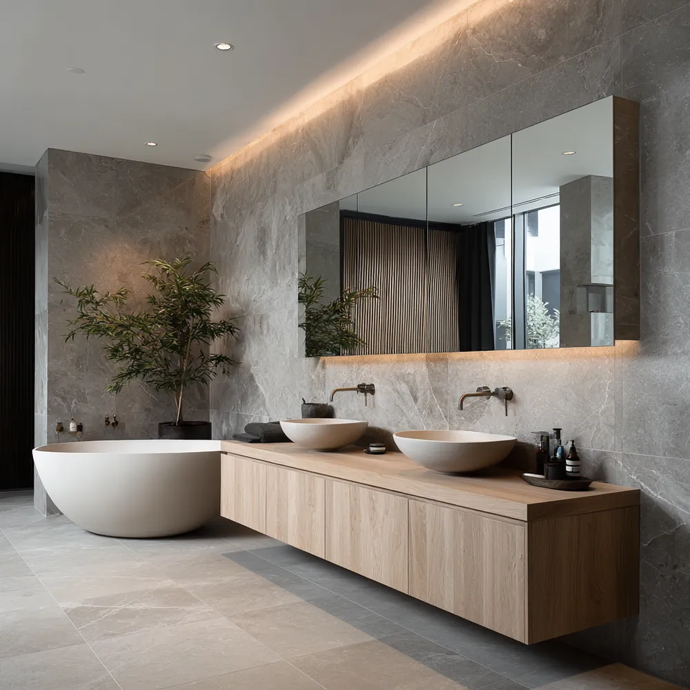 Discover serenity in your bathroom with Japandi's minimalist approach. This style beautifully combines Japanese tranquility with Scandinavian simplicity, creating a calm and uncluttered oasis. Focus on natural materials like wood and stone, clean lines, and a neutral color palette.