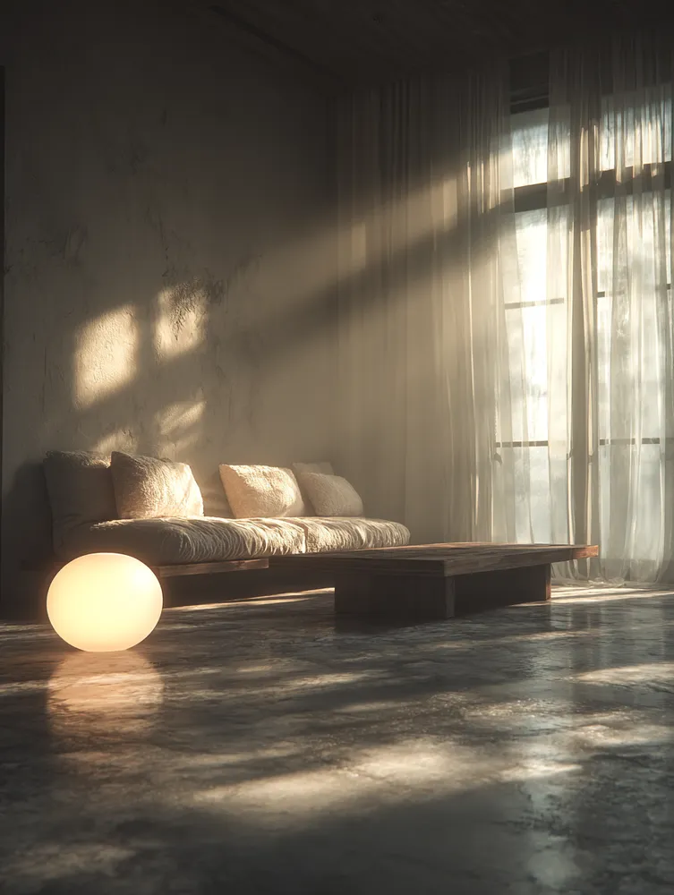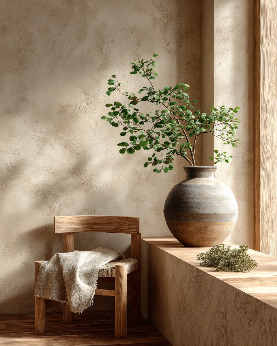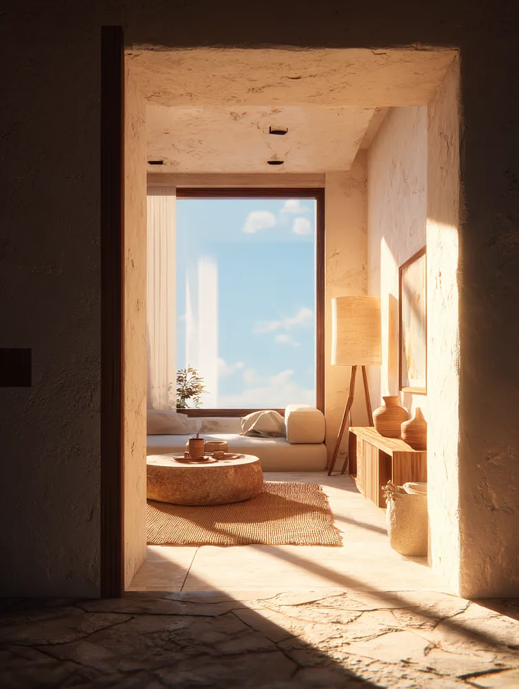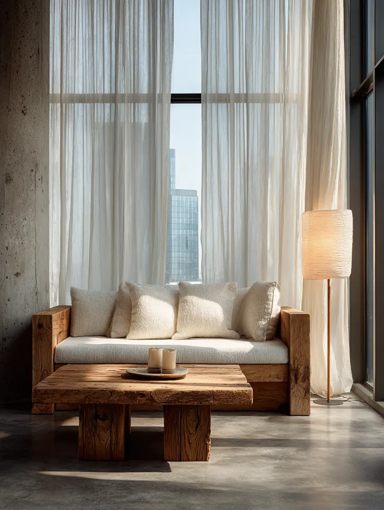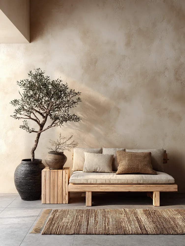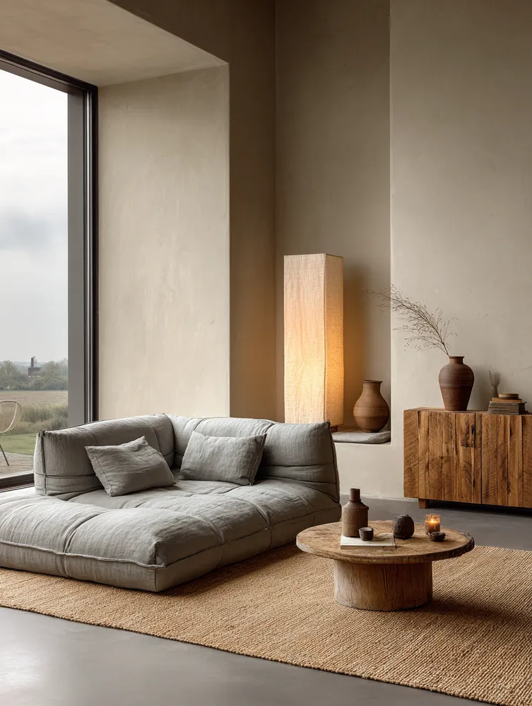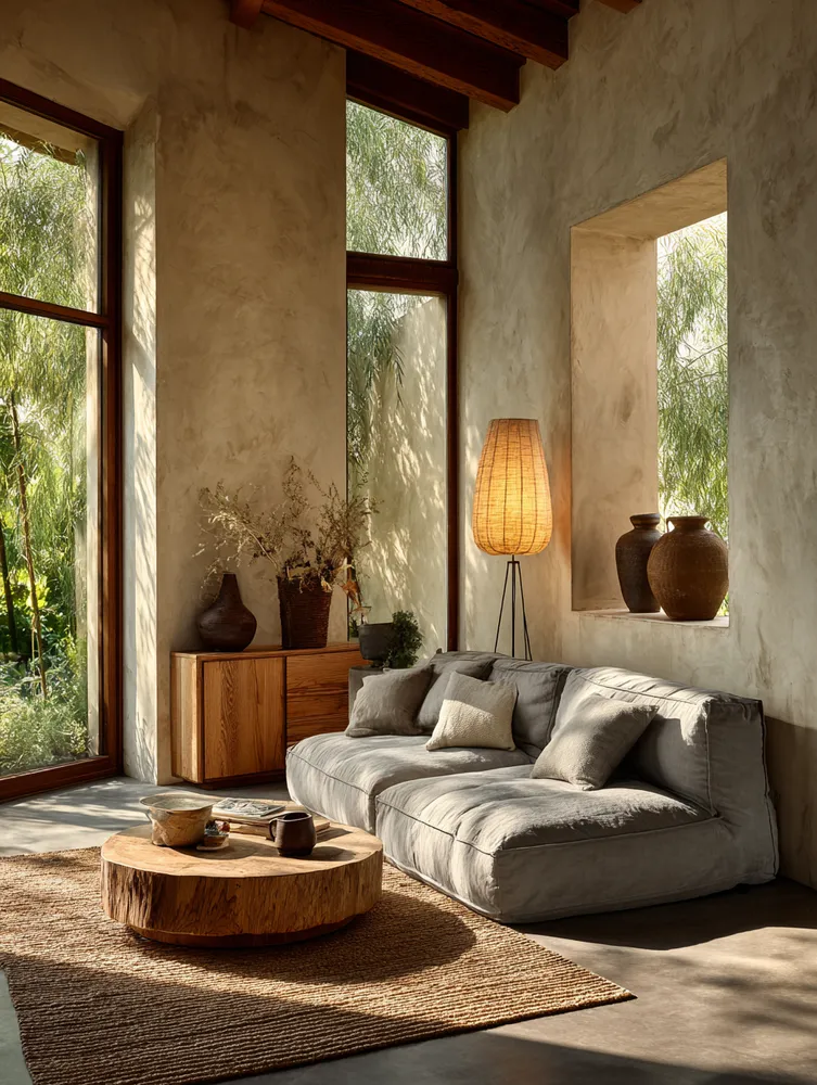 * Organic textures (linen, wool, rattan).