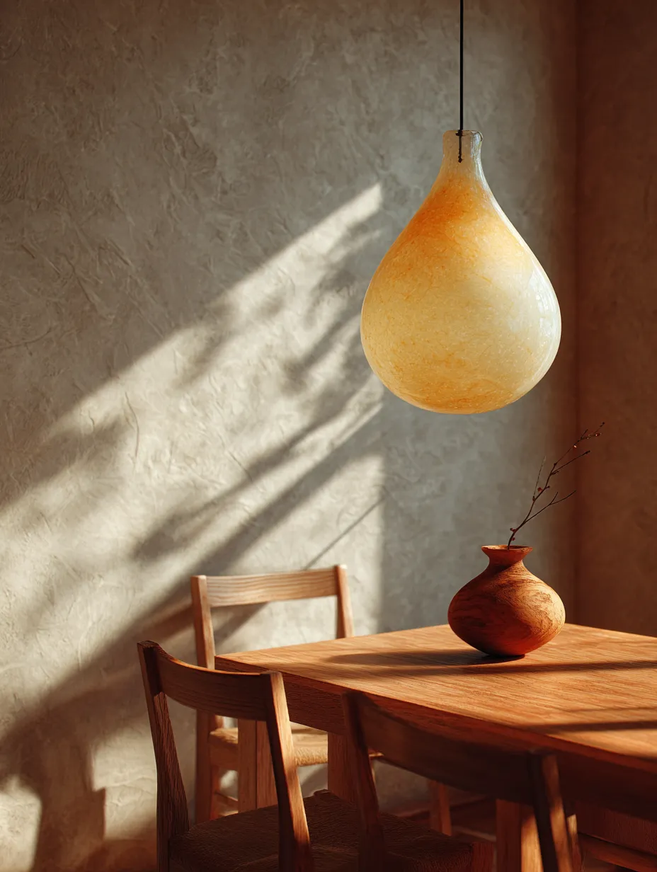 - Install a hand-blown glass pendant light over your dining table.