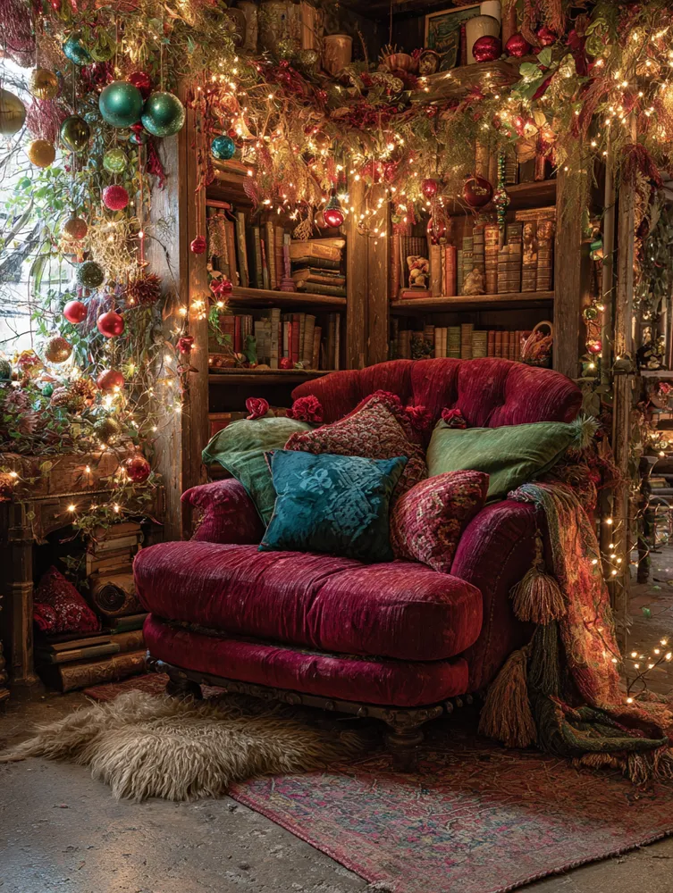This holiday season, let's sprinkle some extra joy and embrace that glorious maximalist spirit! Forget sparse decor; think layers of texture, unexpected pops of color, and an abundance of cozy. Create your dream Christmas nook with plush velvet throws, twinkling fairy lights draped artfully, and a curated collection of vintage ornaments that tell a story. Don't be afraid to mix and match patterns – it's all about expressing your unique, free-spirited style! 🎅 Pile on the cushions, add a lush evergreen garland, and let the festive warmth envelop you. Ready to create your own little wonderland? 💖