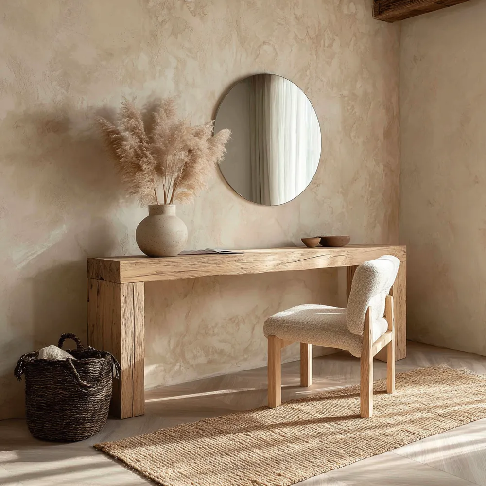 Your entryway sets the tone for your entire home. For a minimalist desert dweller, this means creating a welcoming, grounded space using natural palettes and organic textures.