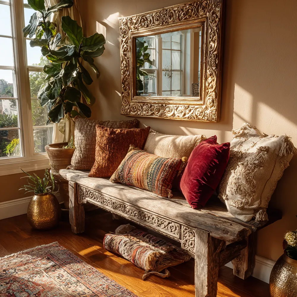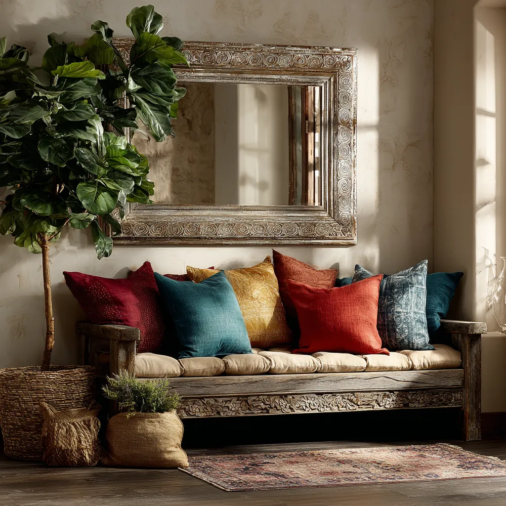 • **Textural Accents:** A woven basket for mail or keys, a jute doormat, or a piece of local desert art.