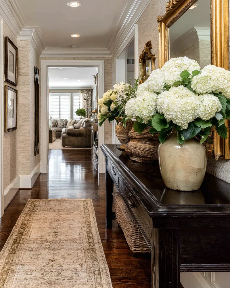 • **A Statement Piece:** A console table made of solid, natural wood or textured stone.