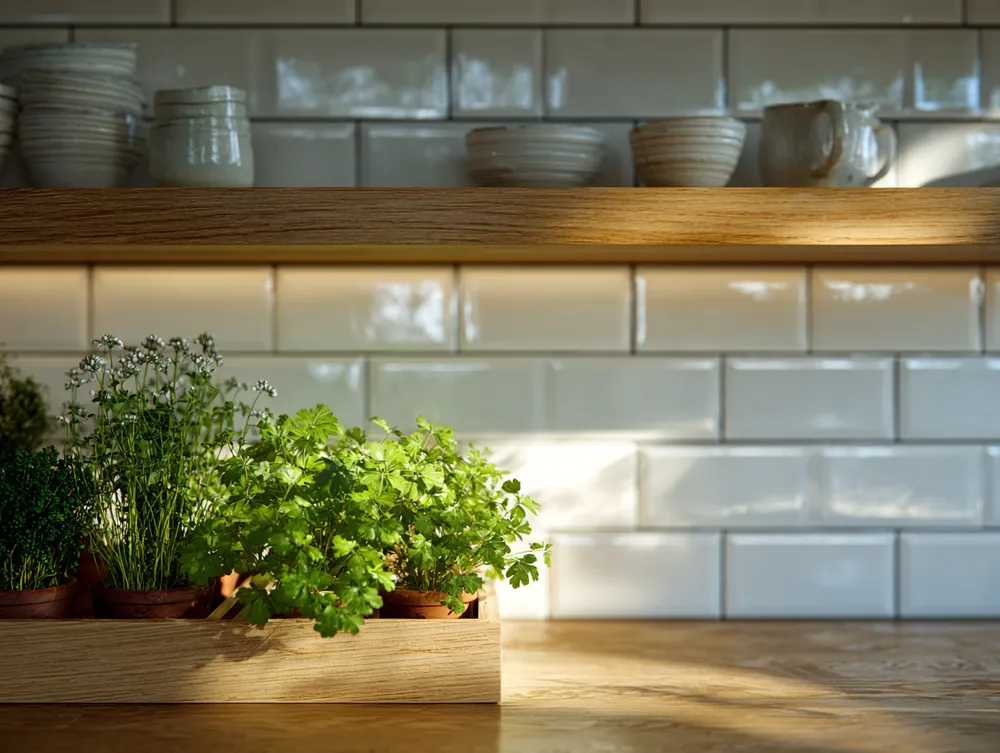 • **Wood Elements:** Think natural wood cabinetry, a wooden cutting board, or a simple bowl.