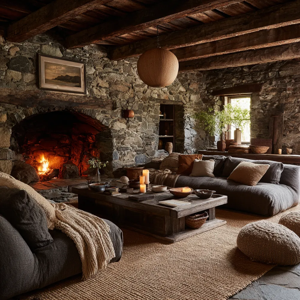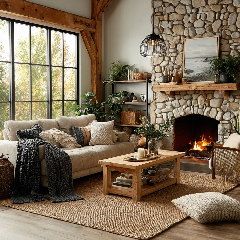 • **Textured Accents:** A reclaimed wood accent wall or beams.