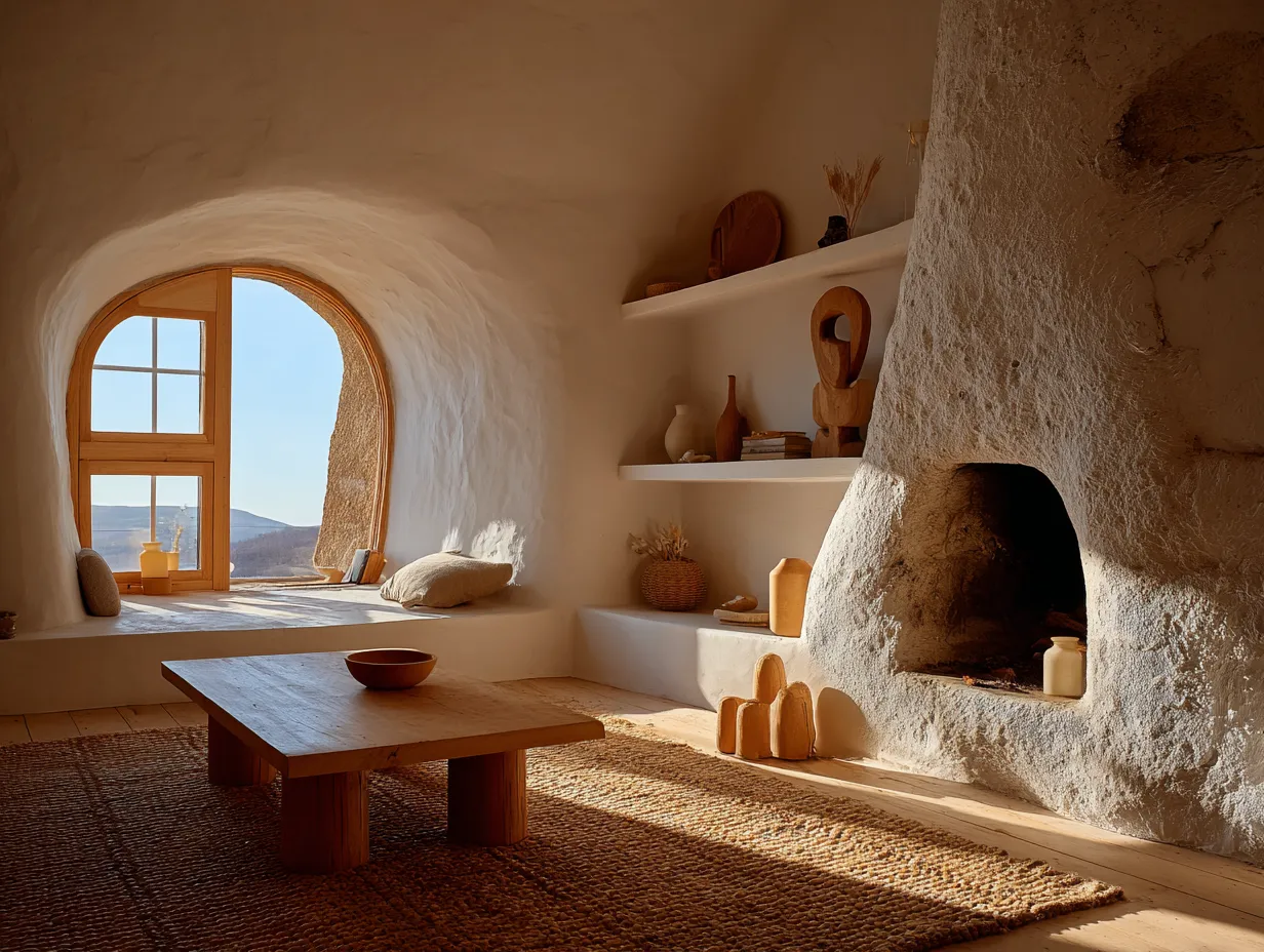 Natural Wood Accents for an Organic Desert Living Room 🪵