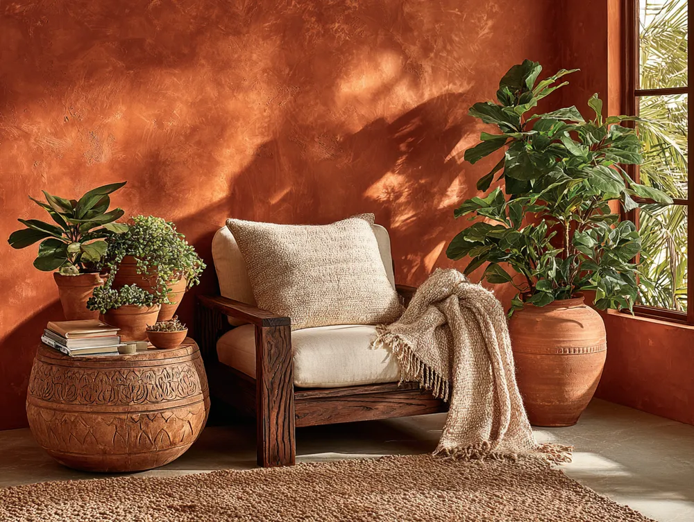 - Earthy tones with bright accents