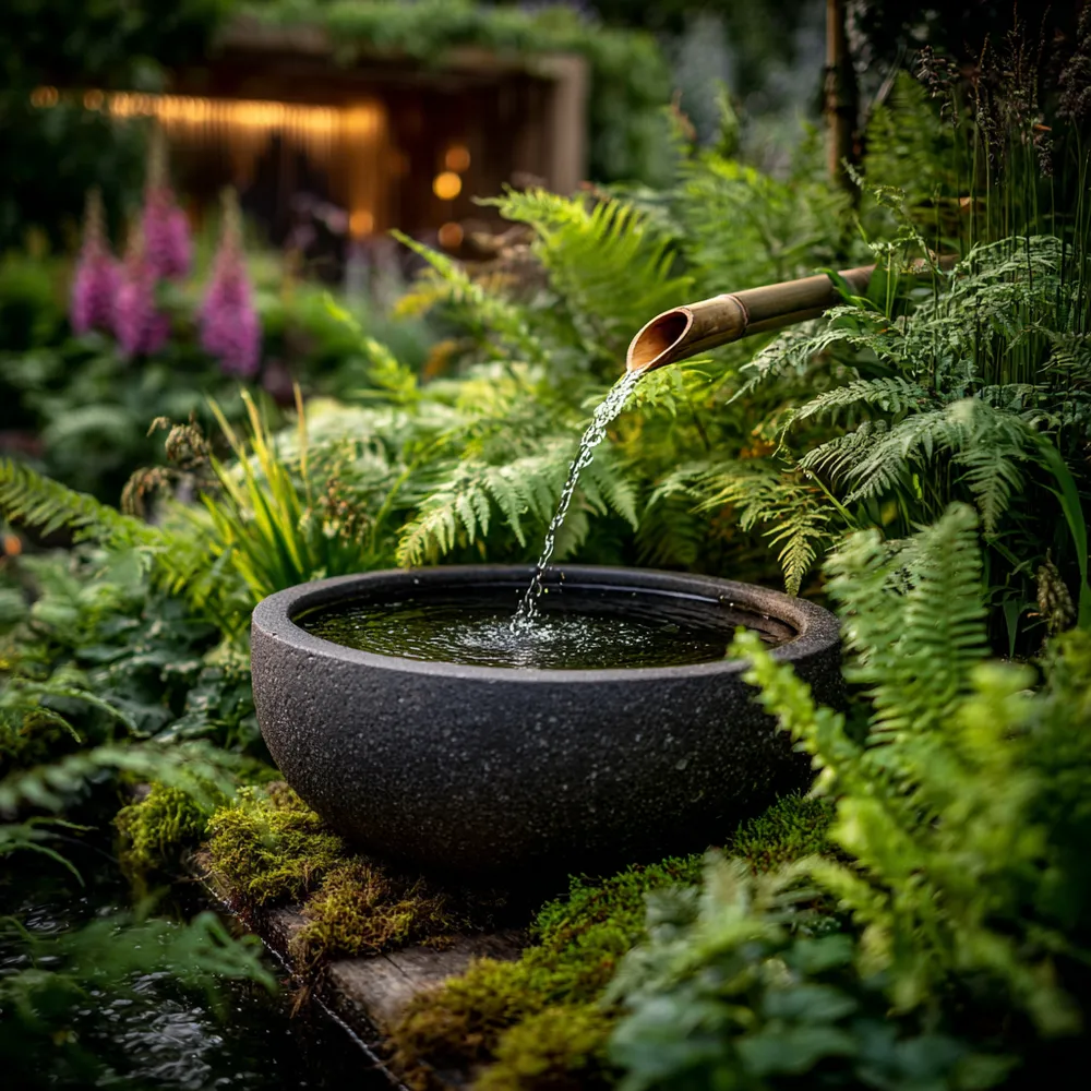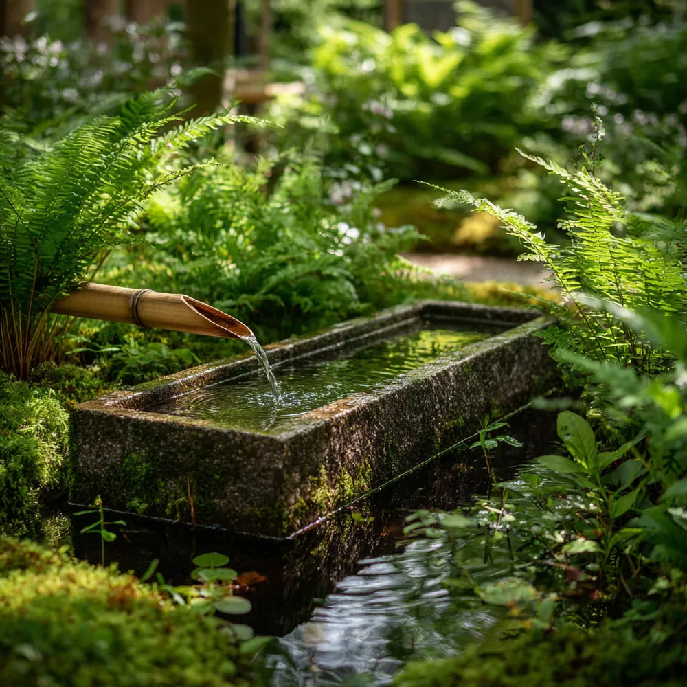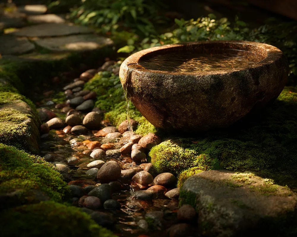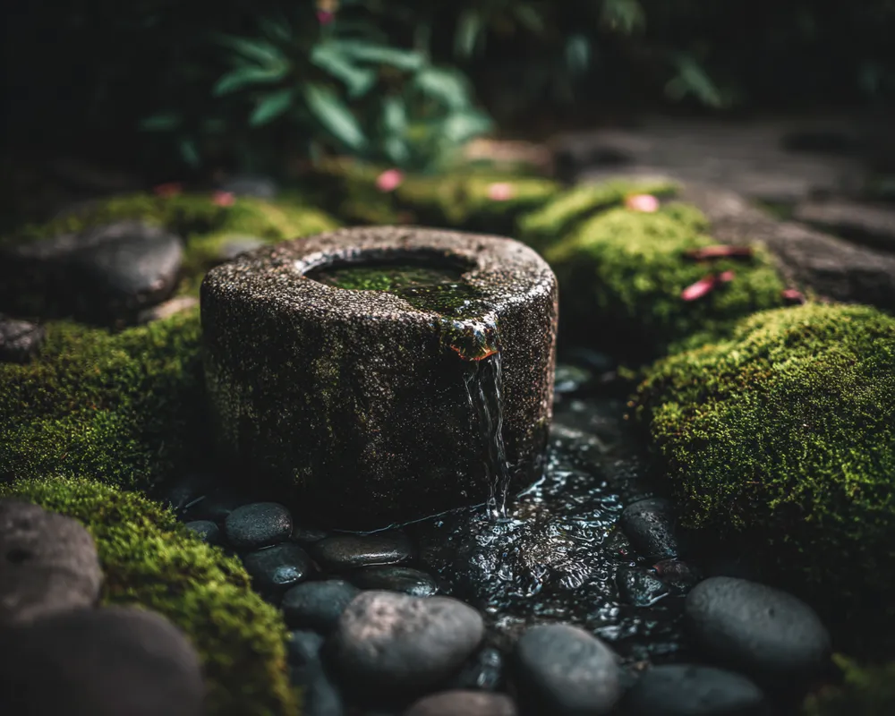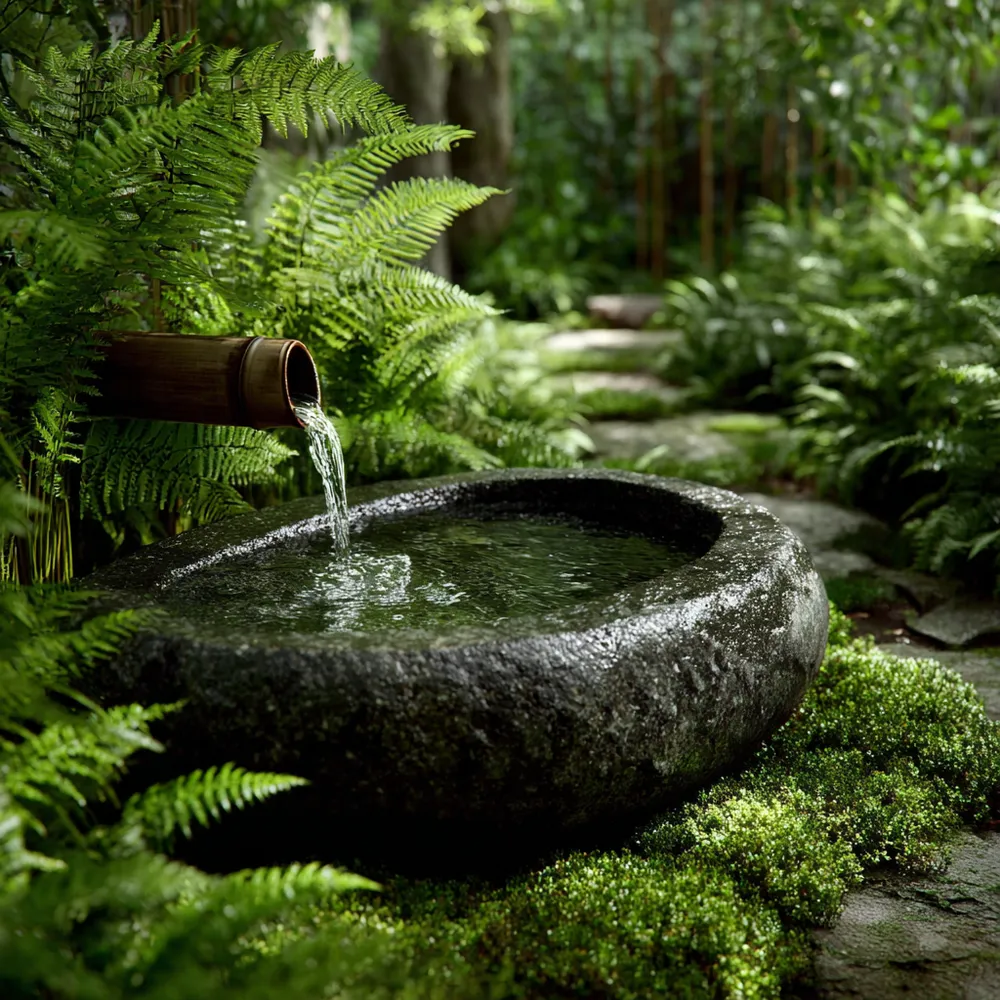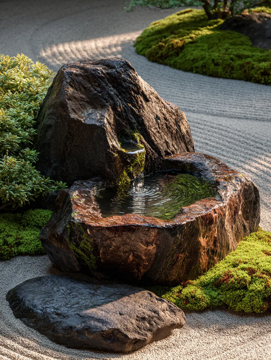 * **Zen Fountain:** Simple, natural stone fountains with a gentle trickle, like a bamboo 'shishi-odoshi'.