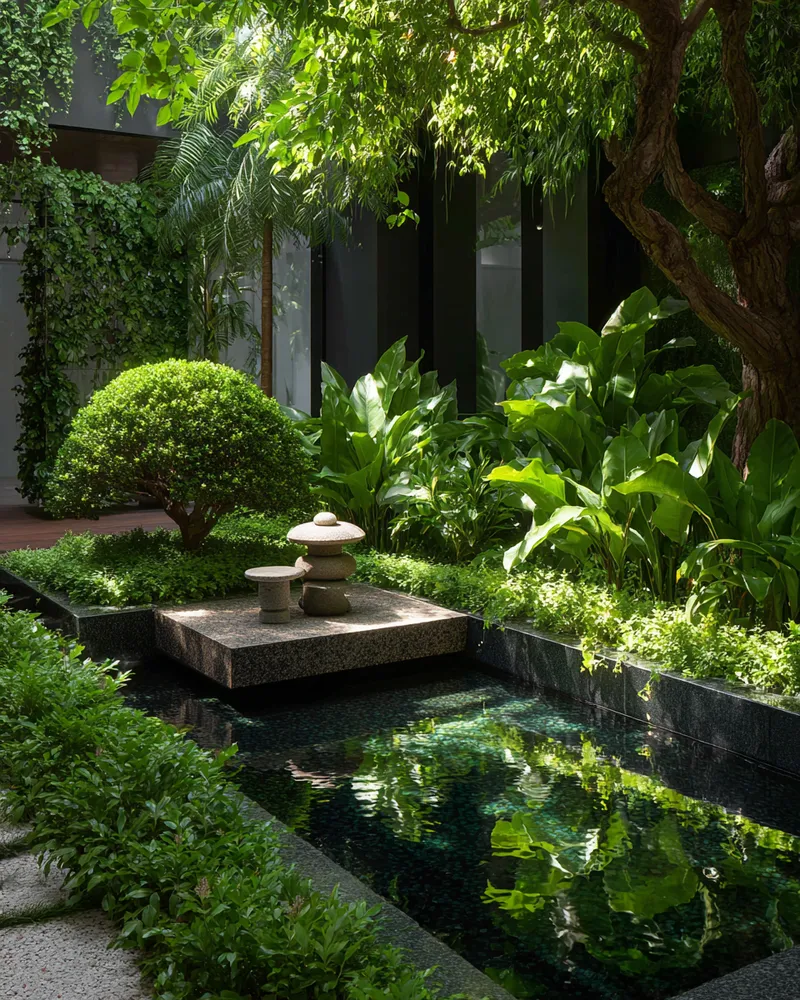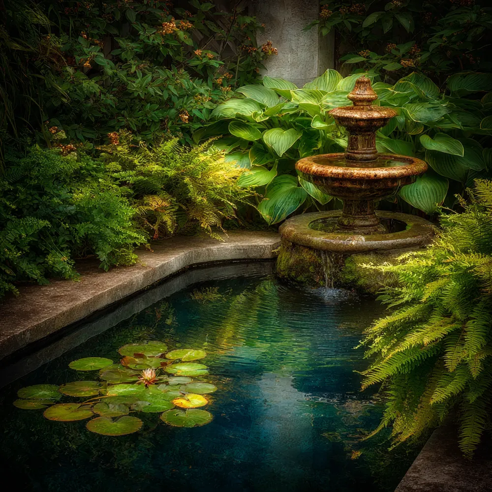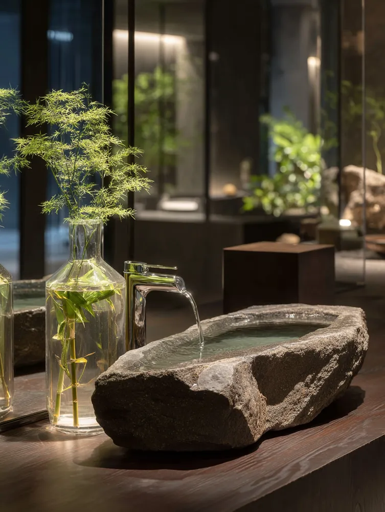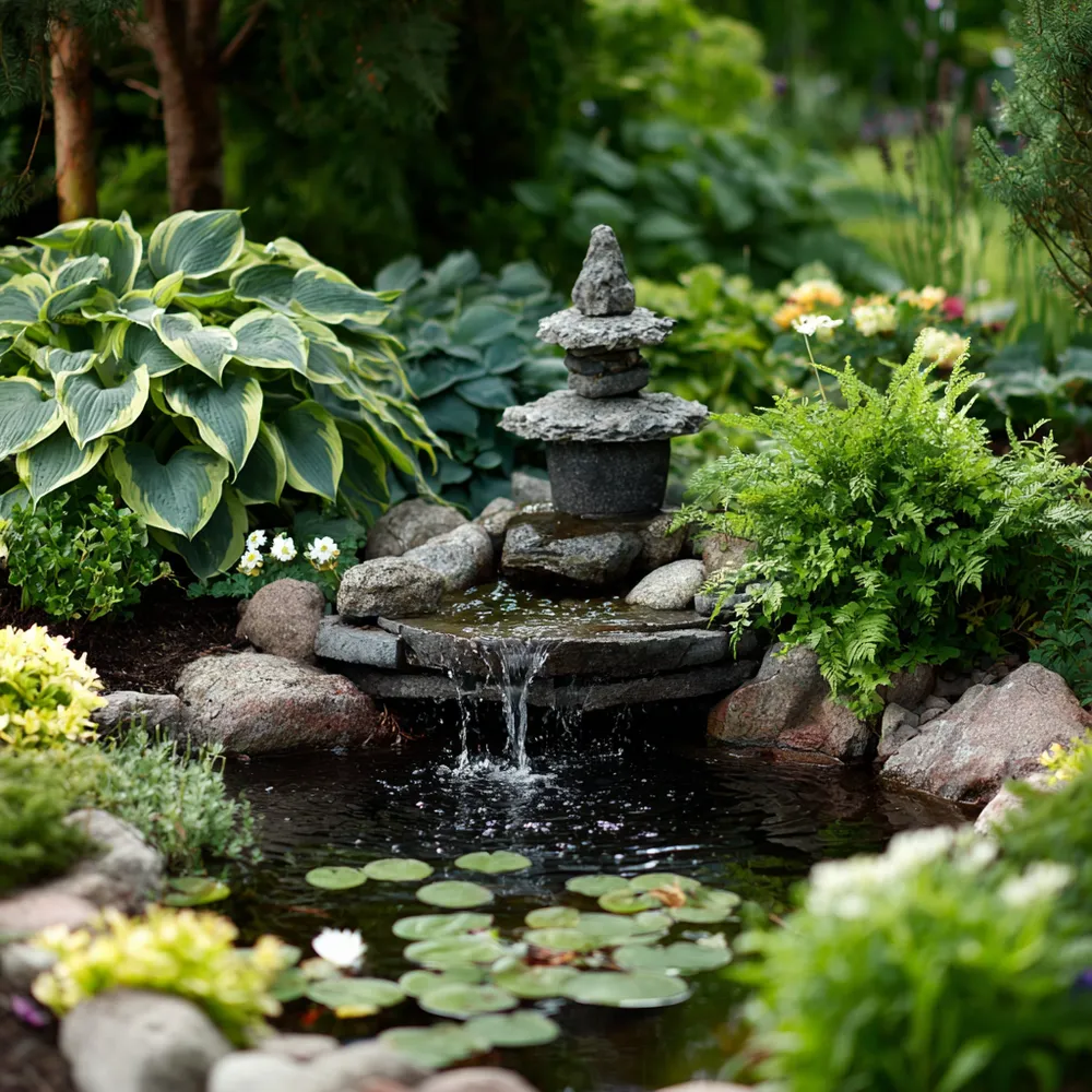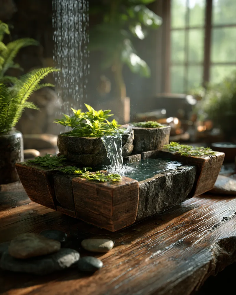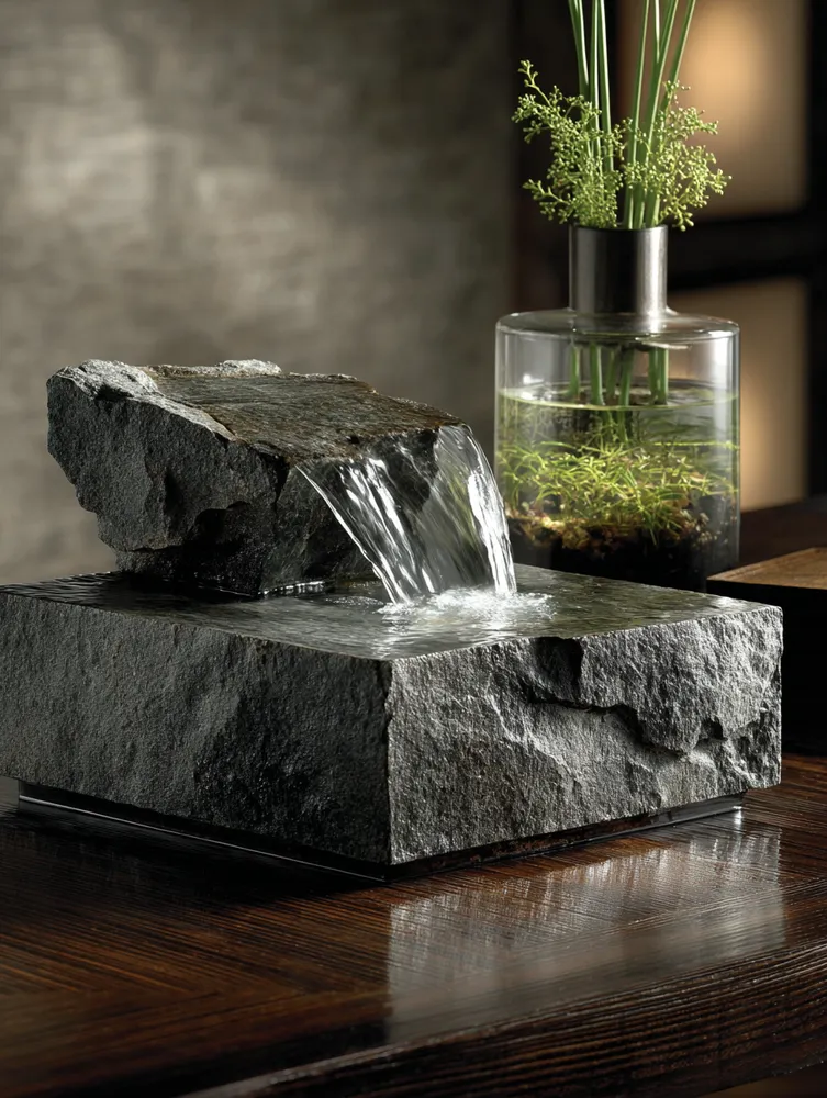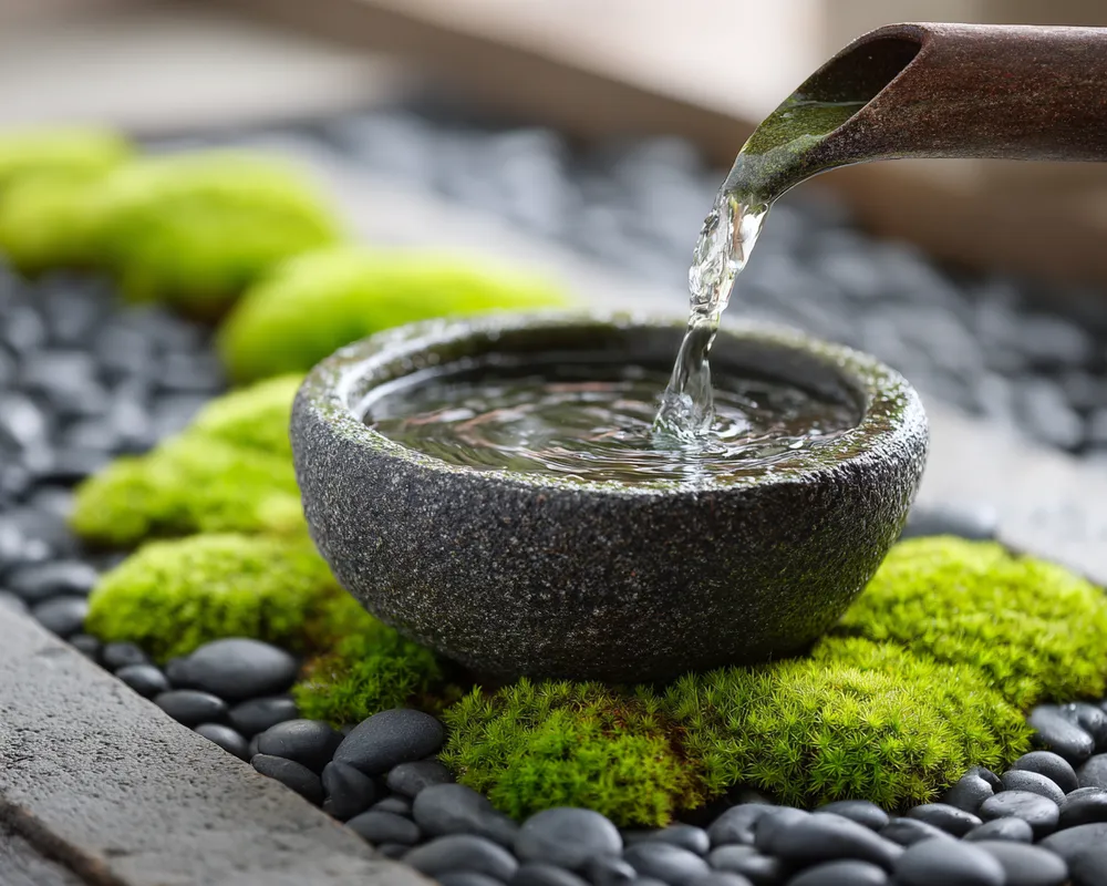 * **Zen Fountain:** Simple, natural stone fountains with a gentle trickle, like a bamboo 'shishi-odoshi'.